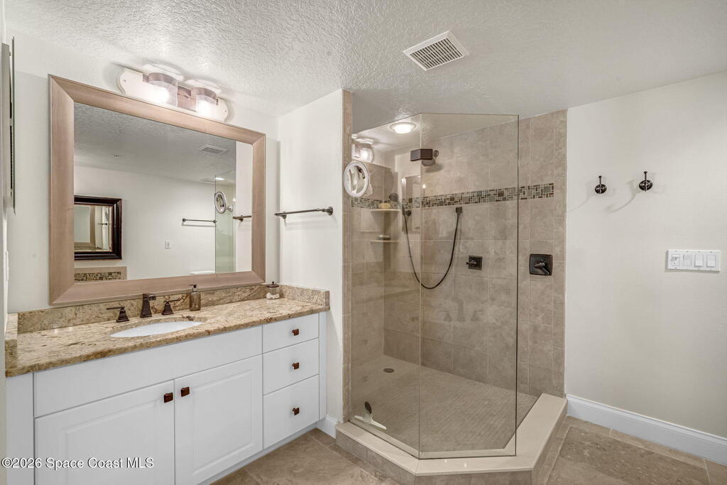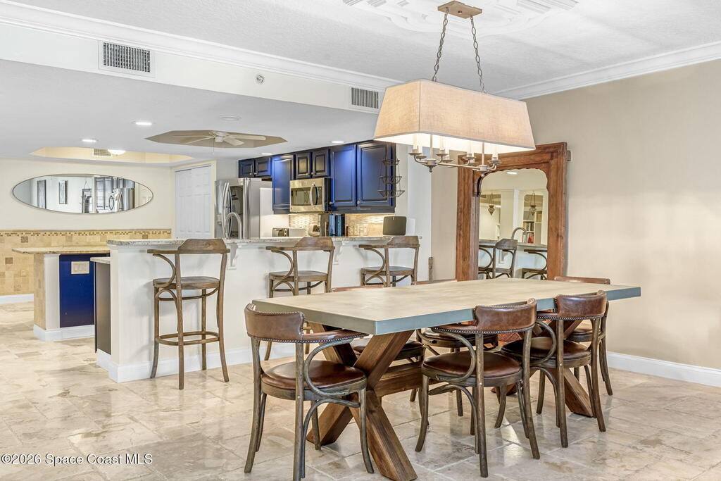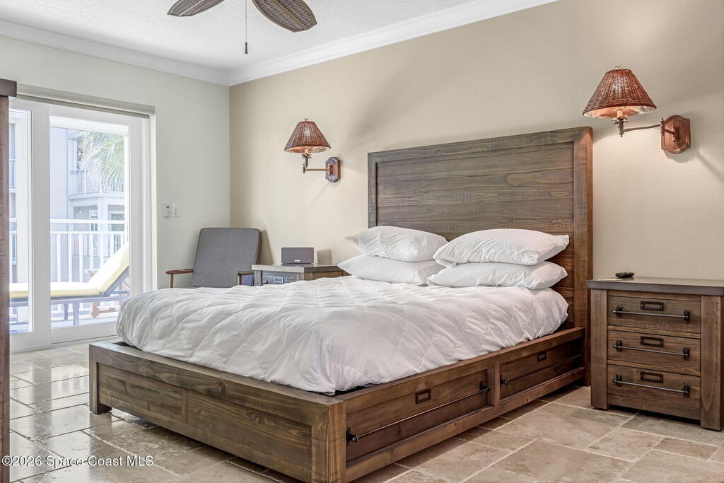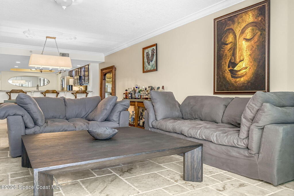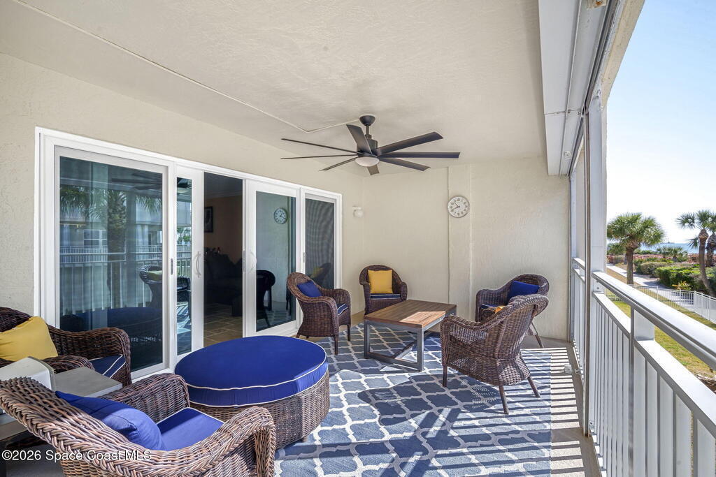 Experience elevated coastal living in this renovated 3BR/2BA split floor plan condo in sought-after Cape Canaveral, steps from the jetty and 1.5 miles (30-min walk/10-min bike) to Port Canaveral. Located in a meticulously maintained 10-acre gated community of two 40-unit buildings with 90-day minimum rentals and very few leased units, ensuring peace and privacy. New roof and concrete restoration provide decades of low-maintenance living. Features include hurricane-impact sliders/windows with turtle glass, travertine floors, high-end appliances including full-size Thor wine fridge, remodeled 1.5-car garage with epoxy floors, lighting, fan, plus covered parking. Nearly all RH/Pottery Barn furnishings convey. HOA covers water, trash, internet, cable; electric averages under $100/month. Pool, sauna, fitness center, tennis, basketball, and private beach access complete this serene Space Coast retreat.