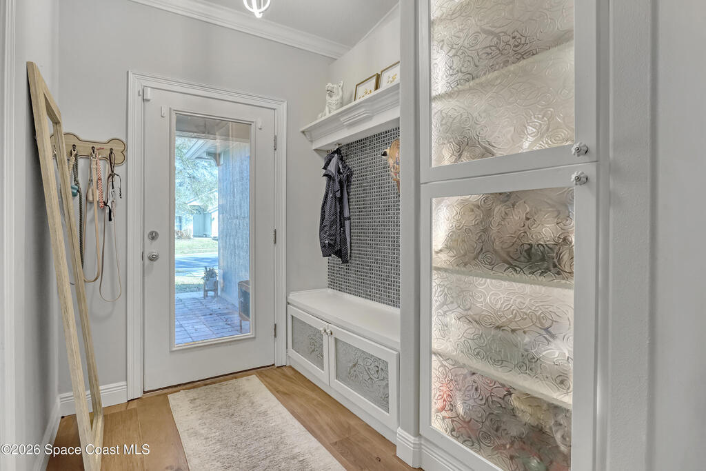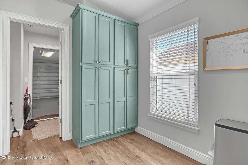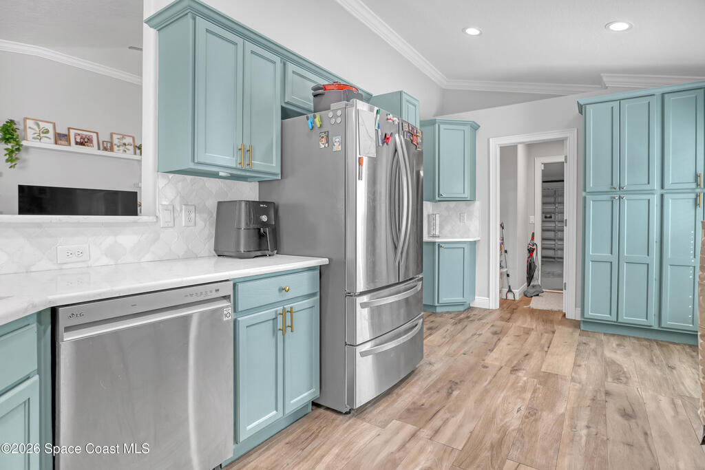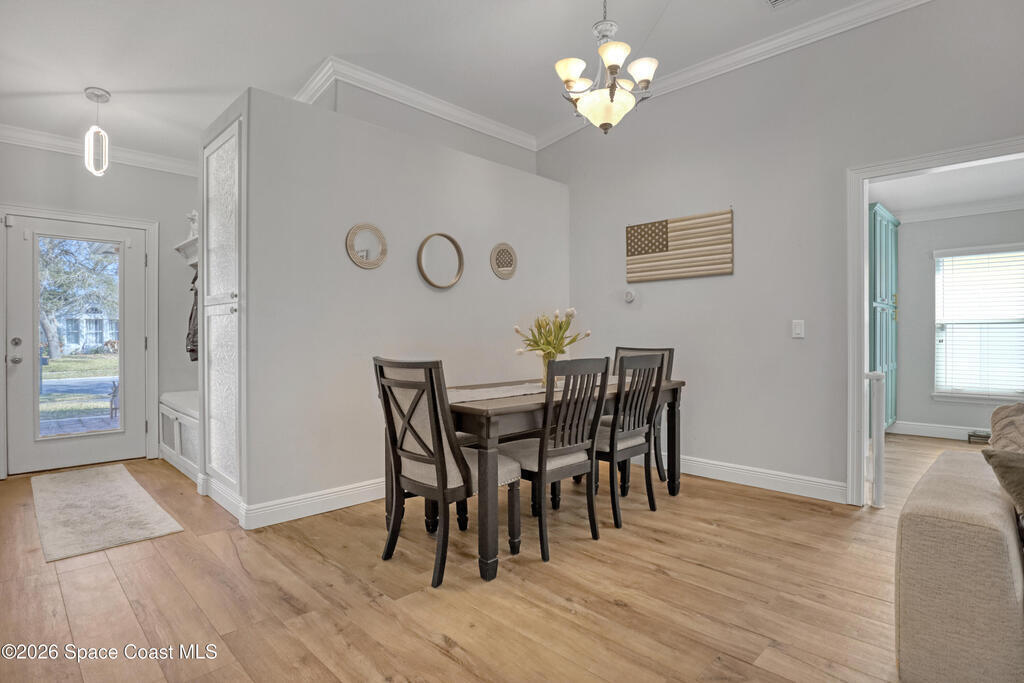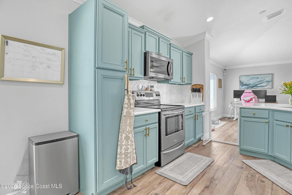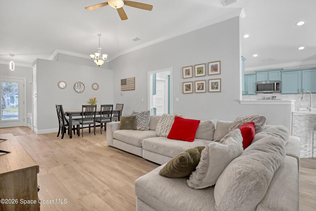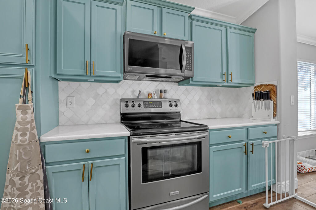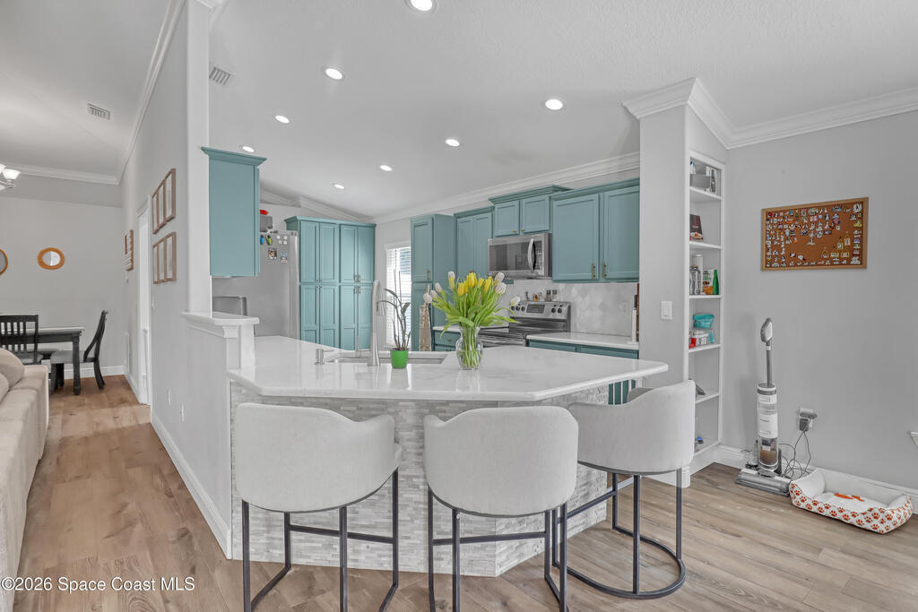 Located in the heart of Melbourne and just minutes from Patrick Space Force Base, this 3-bedroom, 2-bath home offers the perfect blend of style, comfort, and convenience. Easy access to the interstate, beautiful beaches, shopping, and dining makes daily living effortless.Inside, you'll find an open, light-filled layout with crown molding throughout. The stunning kitchen features Tiffany blue cabinets, quartz countertops, and stainless steel appliances -- a true focal point of the home.Major systems have already been updated with a newer roof, A/C, and water heater. Walk-in closets, custom built-in shelving, and a fully fenced backyard add function and flexibility for today's lifestyle.