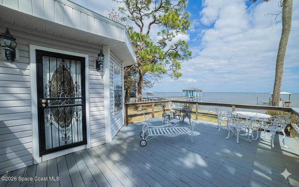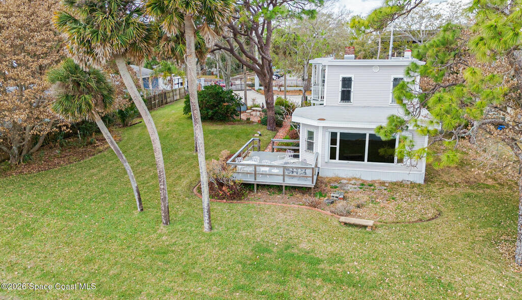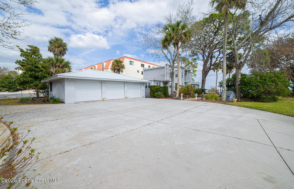 Experience timeless charm and modern comfort in this stunning Indian River waterfront home. Original wood floors blend beautifully with a thoughtfully updated kitchen, creating the perfect balance of character and convenience. Enjoy breathtaking river views and unforgettable rocket launches from your private dock or the primary bedroom balcony. This exceptional property features two fireplaces, high-impact storm shutters, a newer roof, 2 A/C units, and a sprinkler system. The spacious 3-car detached garage offers ample storage and workshop potential, while the dedicated laundry room adds everyday ease. A rare opportunity to own a true waterfront retreat in a premier location.