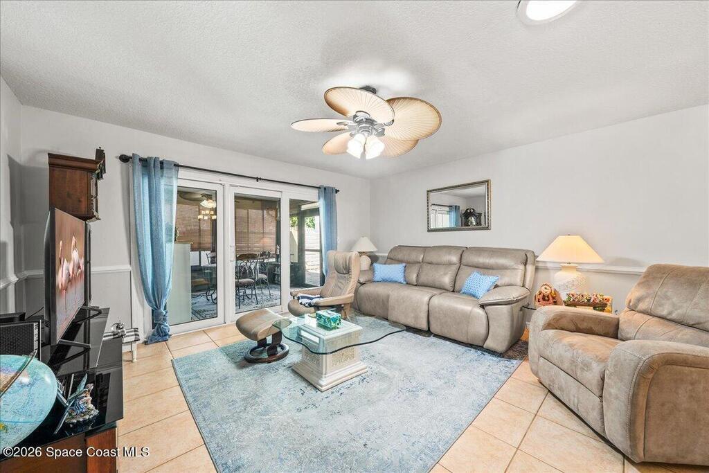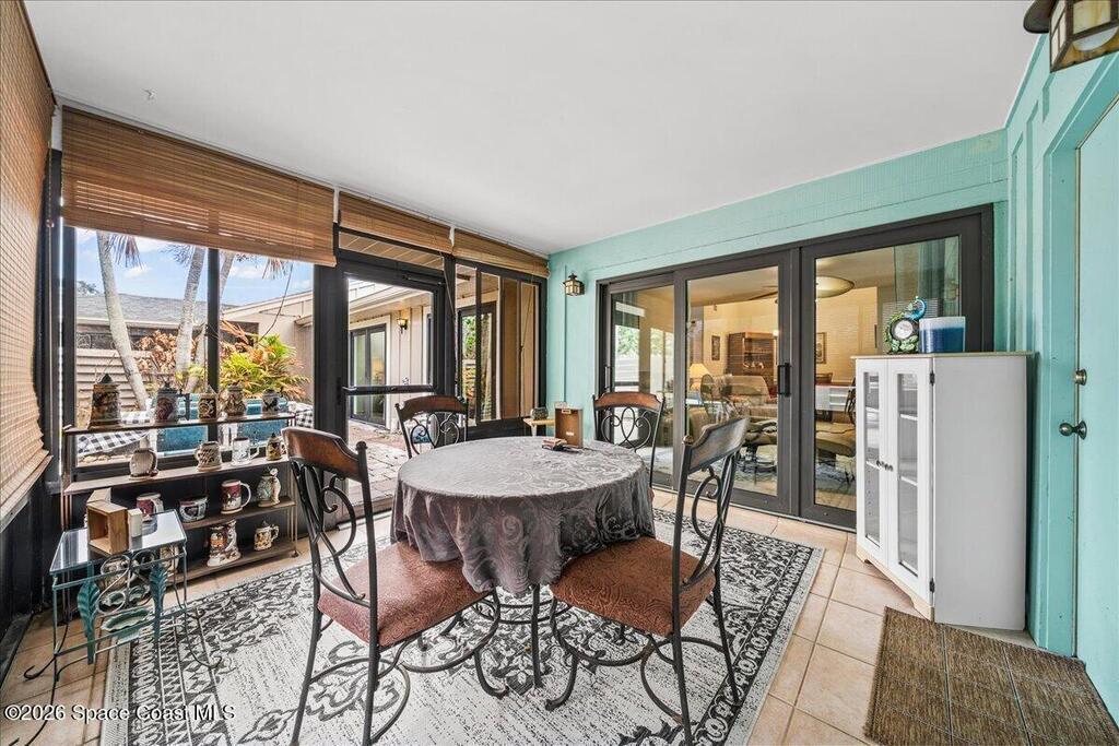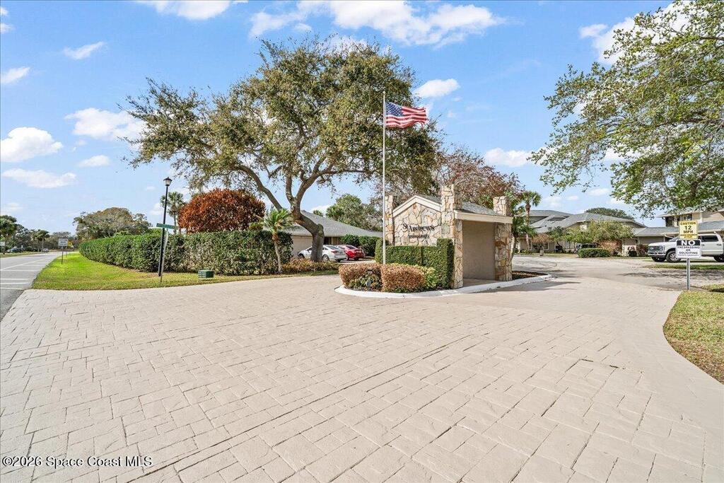 A RARE opportunity, as units rarely become available for sale in this highly sought-after Suntree community. Saint Andrews Townhomes is distinguished by mature oak trees, lush foliage, interconnected sidewalks throughout the community, welcoming golf cart access to the Suntree Challenger golf course and country club. This home is the most convenient to your resort pool! Step inside to experience the layout that delivers 'function and flow' bright & airy spaces showcasing tile floors where you expect, and wood laminate in bedrooms, this means, NO CARPET. Updated kitchen cabinets and solid surface counter tops, gas range means gourmet cooking can happen whenever you wish. a private covered lanai and private courtyard provides entertainment space for guests or quiet time sipping coffee or relaxation. Updated bathrooms are yet another plus. 2 car garage, including cabinets/tool storage. Very low monthly HOA fees, includes community pool, lawn care and exterior painting of units.