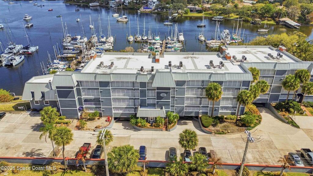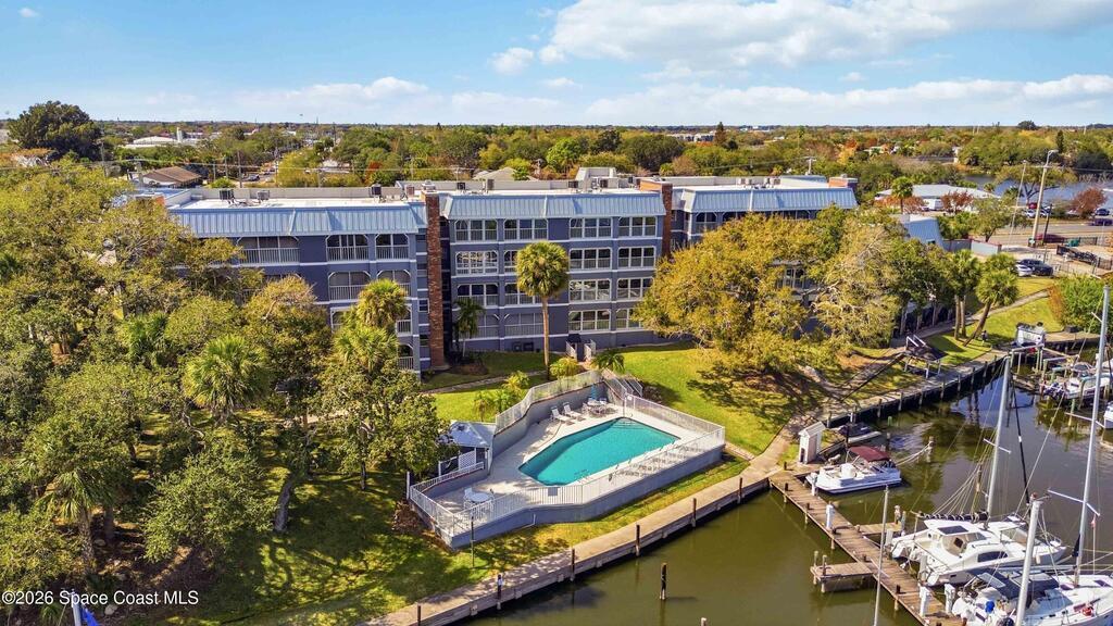 PLEASE SEE FEATURE SHEET IN DOCUMETNS TAB - TOO MANY FEATURES AND UPGRADES TO MENTION. Affordable Luxury exceptional views. This second-floor condo has 3-bedroom, 2-bath waterfront residence offers tranquil views of the Eau Gallie River and marina with a functional split floor plan. The living area opens to a large screened balcony--perfect for river breezes and boat watching. Dining area features a built-in wet bar, sink just needs to be installed, supply lines and drain is in place. The kitchen includes stainless steel appliances and granite countertops. Guest bathroom complete with Jacuzzi Tub, the primary suite enjoys water views, a double-sink vanity, and walk-in shower. Tile and wood flooring, in-unit laundry, hurricane-rated balcony screens, extra storage, and garage parking included. Minutes to Downtown Eau Gallie dining, shopping, and arts. HOA covers cable, internet, water, sewer, trash, insurance, and exterior maintenance. Community pool, clubhouse, and elevators.