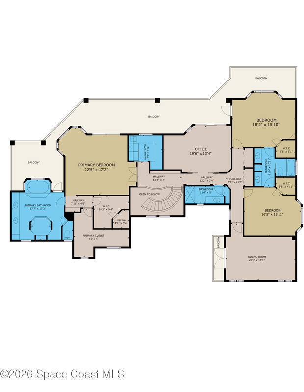- Rooms: Bathroom 2, Bathroom 3, Bathroom 4, Bathroom 5, Bedroom 2, Bedroom 3, Bedroom 4, Bedroom 5, Dining Room, Laundry, Living Room, Office, Primary Bathroom and Primary Bedroom