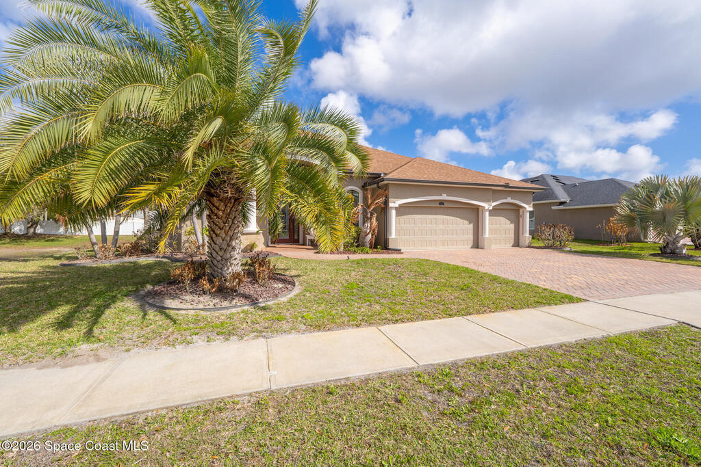 Welcome to Tuscany Estates, one of Palm Bay's most desirable gated communities. This beautifully appointed 4-bedroom plus office, 3-bath, single-story home offers over 2,600 sq ft of thoughtfully designed living space on an oversized lot at the end of a quiet street. Inside, the open floor plan features soaring ceilings, tray accents, crown molding, shiplap details, and rich wood flooring, creating a refined yet welcoming atmosphere. The kitchen flows seamlessly into the main living areas, ideal for entertaining and everyday living, while the split-bedroom layout provides excellent privacy, including a separate guest suite. Step outside to a private resort-style backyard featuring a saltwater, gas-heated pool and spa with waterfall features, LED lighting, and a fully equipped outdoor summer kitchen, all within a screened lanai. Additional highlights include a 3-car garage, fully fenced yard, storm shutters, water softener, new gutters, and updated exterior paint. Ideally located just