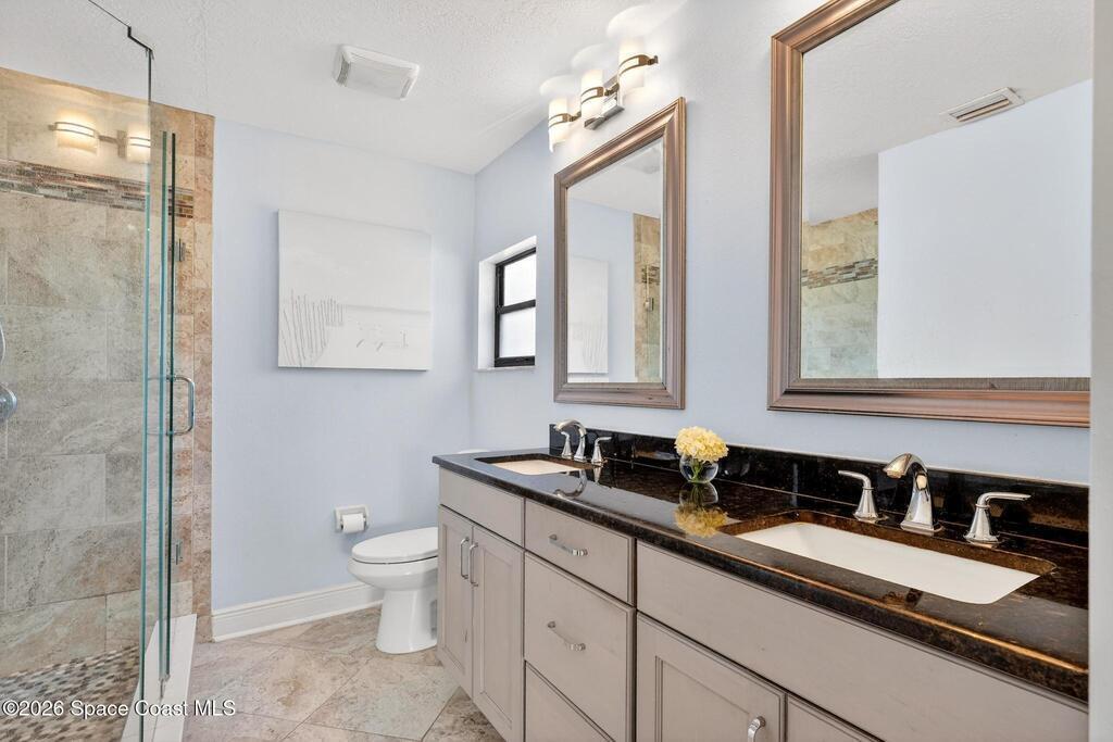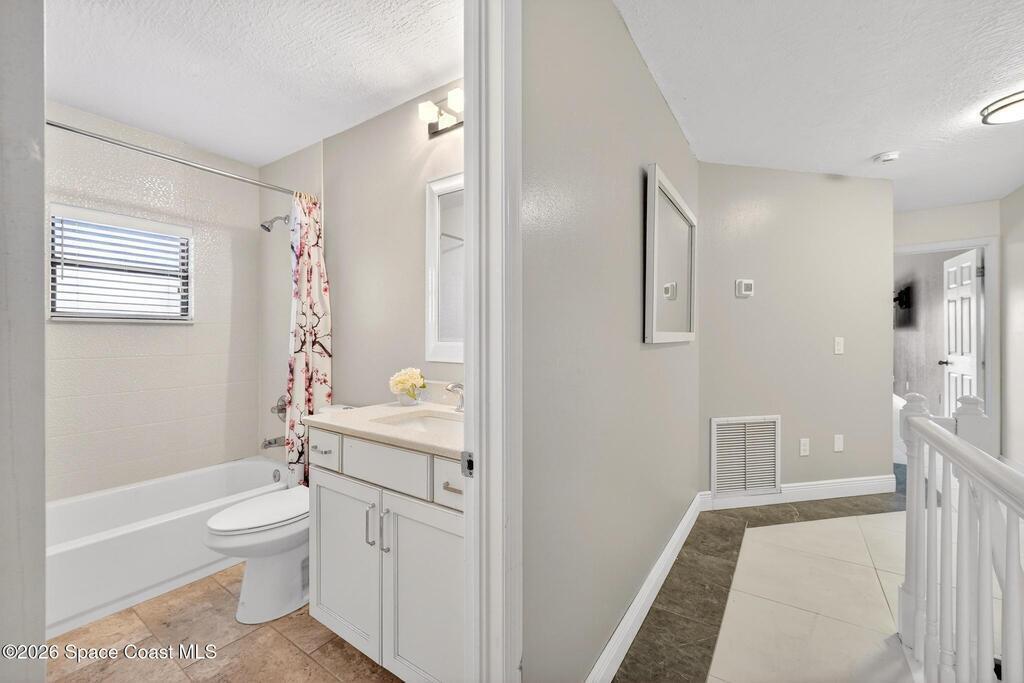 Live the ultimate coastal lifestyle just one block from the beach in this elevated 4-bedroom, 4.5-bath multi-generational retreat. Wake to ocean views from the south-facing primary balcony and enjoy the flexibility of three potential private living quarters under one roof. The home features a private upstairs one-bedroom apartment with its own living room and full kitchen, a spacious open-concept main kitchen downstairs, and a beautifully designed studio ensuite with kitchenette--perfect for guests, extended family, or three generations living comfortably together. Every detail has been thoughtfully upgraded, including two new HVAC systems, all-new ductwork and electrical, tankless water heater, renovated kitchen and four baths, new tile flooring throughout, resurfaced driveway and backyard, refreshed balconies, fresh interior and exterior paint, and a 220-amp outlet for a hot tub or EV charger. Come see a home that can suit all of your needs, whether for family, investment, or both!