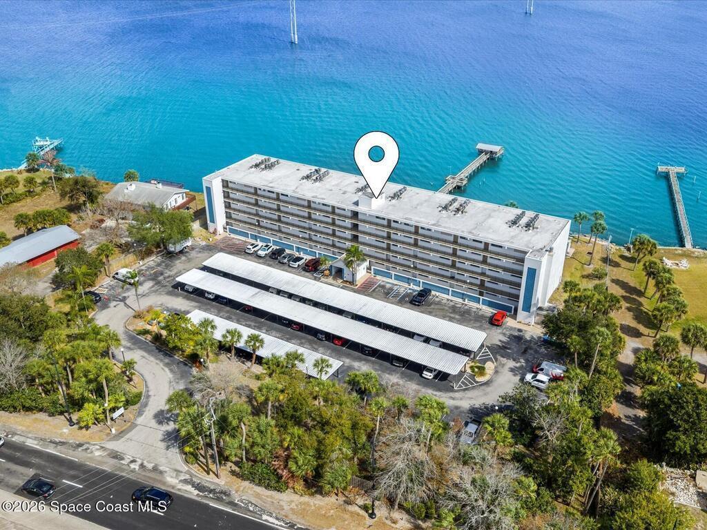Affordable waterfront living at its best! This 3rd floor, 2 bedroom 2 bath condo sits directly on the Indian River Lagoon in Castaway Cove. Imagine watching dolphins play in the water below while you have your morning coffee on your balcony overlooking the river. Open layout with plenty of natural light and stunning views with tile flooring throughout provide low maintenance resort style living. Enjoy the sparkling pool or launch your kayak or paddleboard from the nearby public launch. Covered parking and elevators allow peace of mind and ease of access, and the HOA covers water, sewer, trash and pest control. Close to shopping, restaurants and schools, this condo offers convenience as well as the Florida lifestyle you've been looking for.