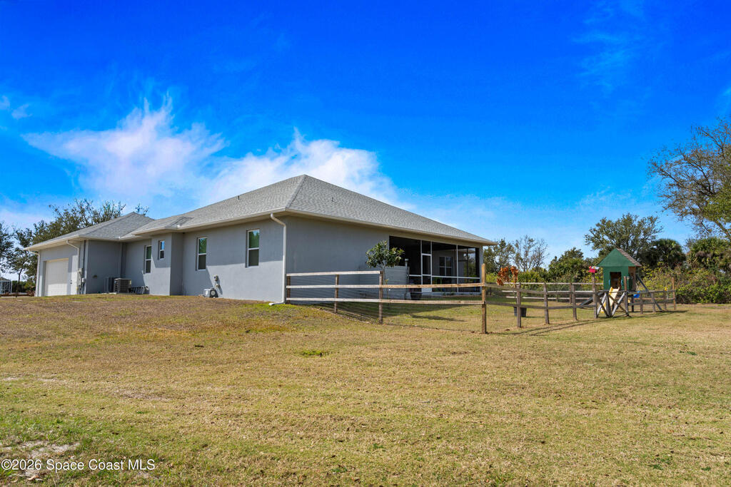 Nestled within the sought-after Deer Run community, this exceptional 2023 custom-built estate offers a rare blend of modern luxury and serene country living. Set on 2.75 acres, this five-bedroom, three-bathroom residence spans over 2,800 square feet of thoughtfully designed space, surrounded by natural beauty and frequent visits from deer and native wildlife.From the moment you enter, refined craftsmanship is on full display. Expansive open living areas are framed by 8-foot doors throughout, impact-rated windows and doors, and stunning wood-look tile flooring that flows seamlessly from room to room. Built with spray foam insulation and equipped with dual A/C units, the home delivers superior energy efficiency and year-round comfort.The split floor plan offers both privacy and functionality, ideal for hosting guests or accommodating multi-generational living. The heart of the home opens effortlessly to an oversized screened-in lanai, creating a peaceful retreat to enjoy morning coffee