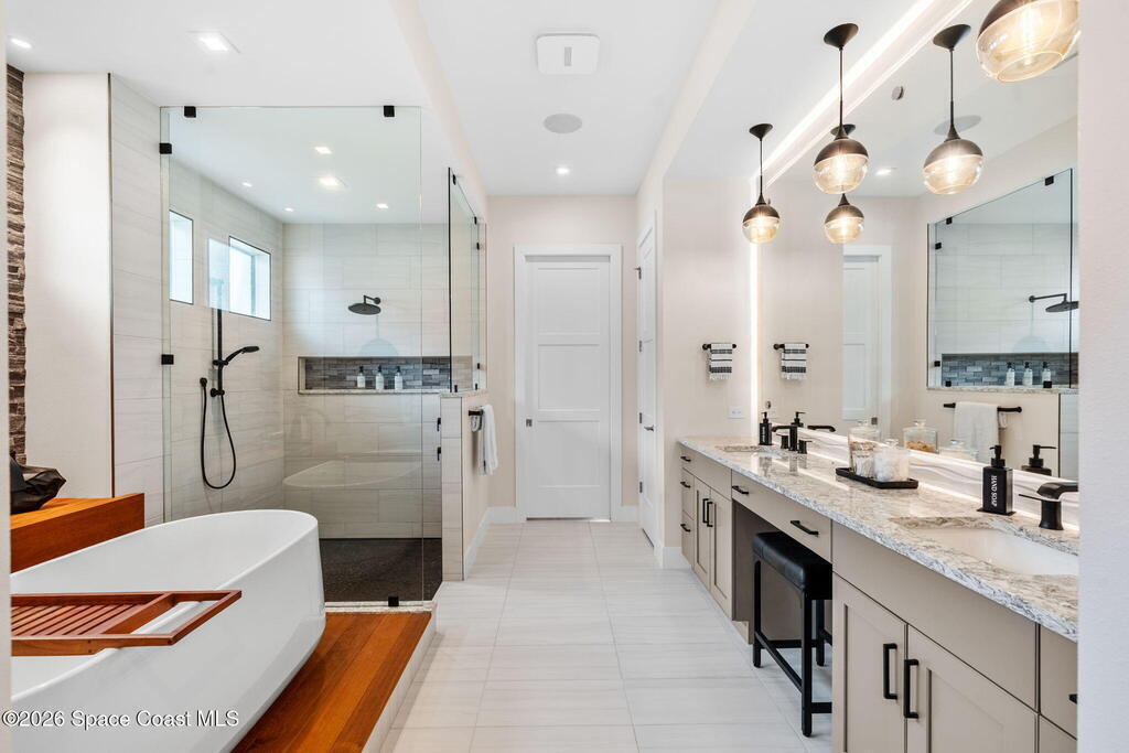 - Interior Features: Butler Pantry, Ceiling Fan(s), Central Vacuum, Eat-in Kitchen, Entrance Foyer, His and Hers Closets, Kitchen Island, Open Floorplan, Primary Bathroom -Tub with Separate Shower, Primary Downstairs, Smart Home, Smart Thermostat, Split Bedrooms, Vaulted Ceiling(s) and Walk-In Closet(s)