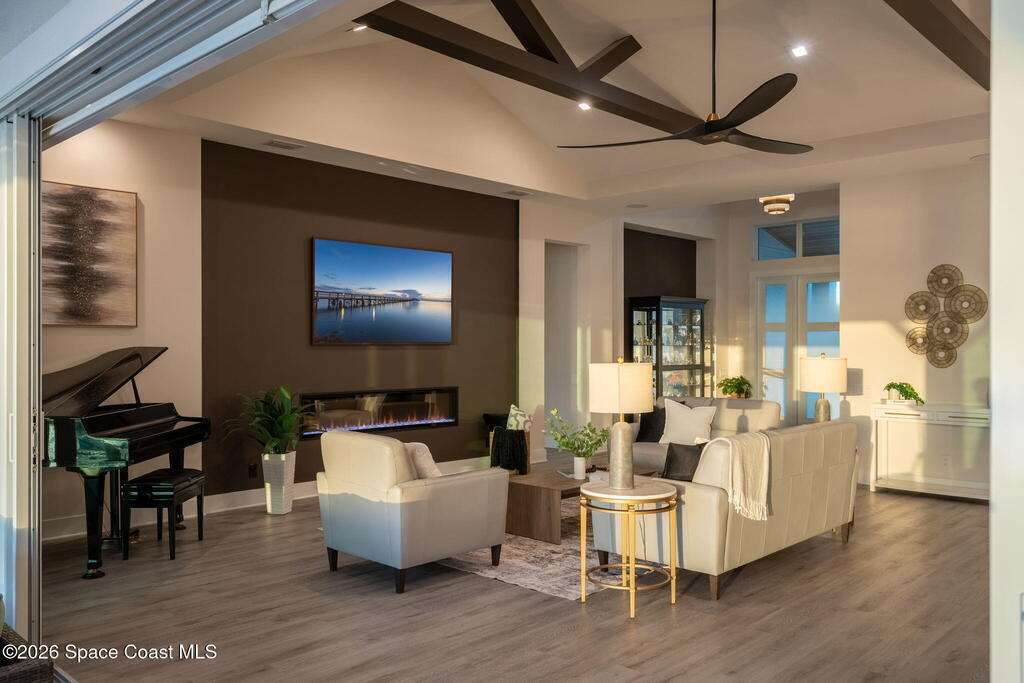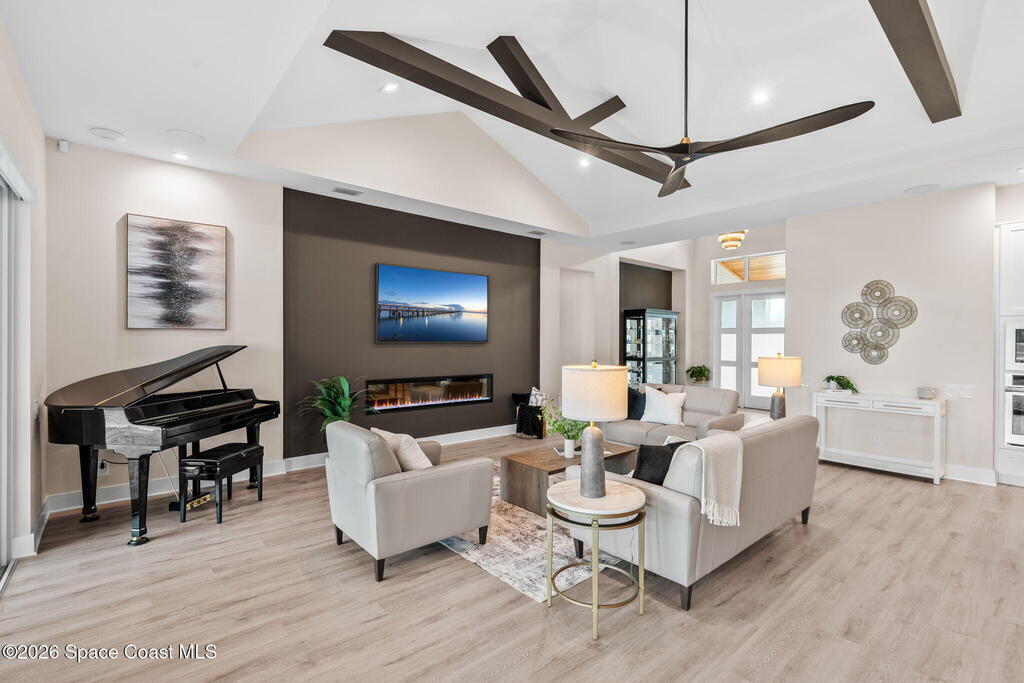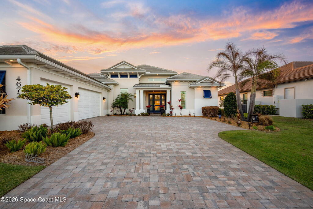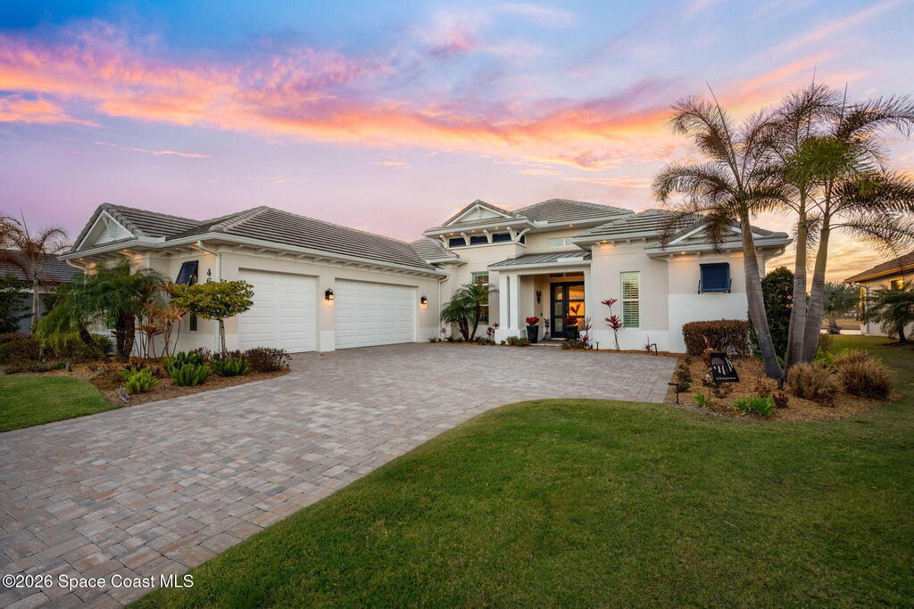 This striking 2023 custom estate in gated Adelaide captures breathtaking lake vistas & delivers an exceptional blend of design, technology & resort-inspired living. Soaring vaulted ceilings crown the open living space anchored by a sleek Dimplex fireplace & a dramatic raised two-level office. The chef's kitchen impresses w/ a fireclay apron sink, illuminated open shelving, pull-out spice storage & a fully customized pantry w/ granite counters & wood shelving. The private primary suite features dual vanities, a seated makeup station & a spa-style bath w/ frameless shower & Toto washlet-ready toilet. Outdoors, a gas-heated saltwater pool & spa showcase travertine coping, Blue Azure pebble finish, glass mosaic tile, tanning shelf, dual water features, color-changing LEDs & 10 therapy jets. A 3-car garage w/ polyaspartic flooring includes EV charging, generator pre-wire & storage racks. Control4 automation, 24 speakers, central vacuum & expansive lake views complete this remarkable estate.