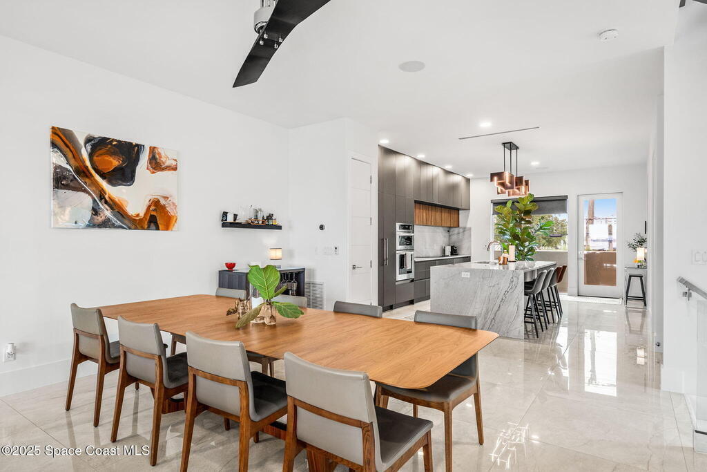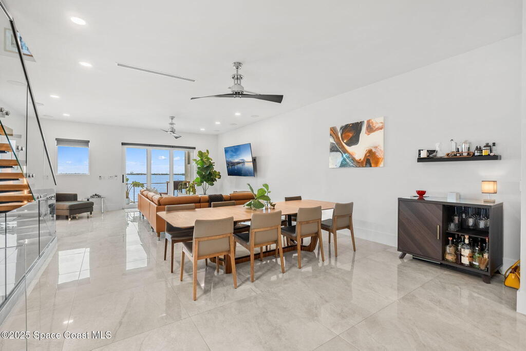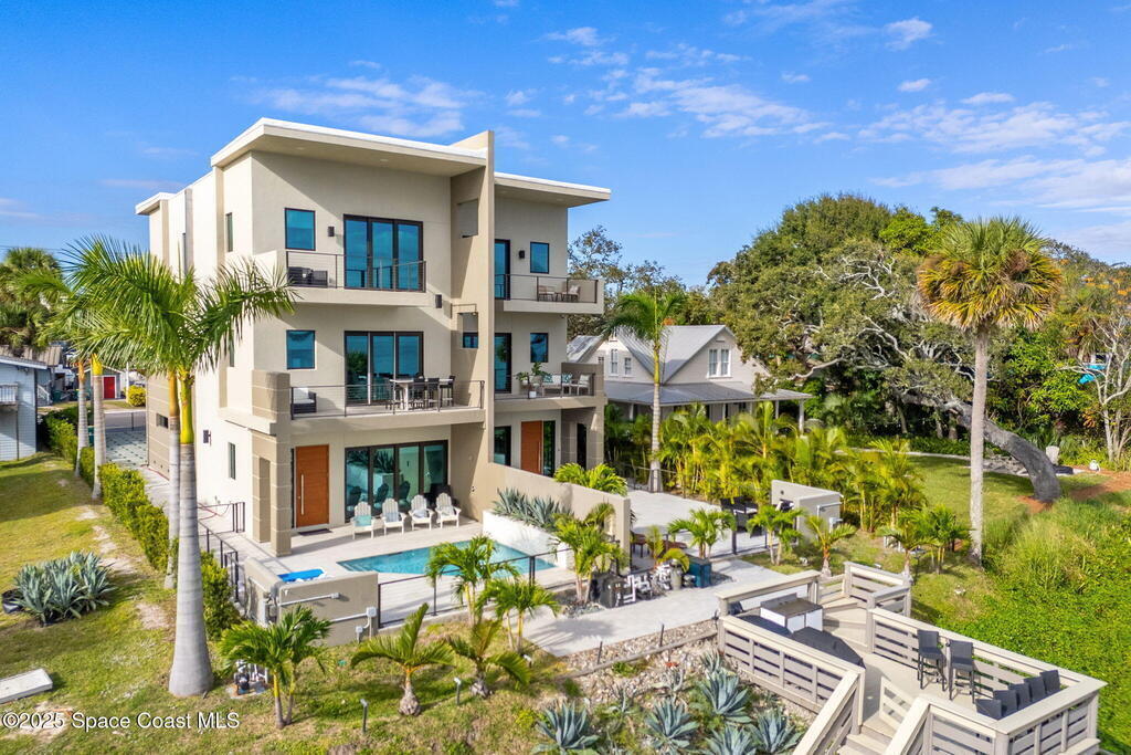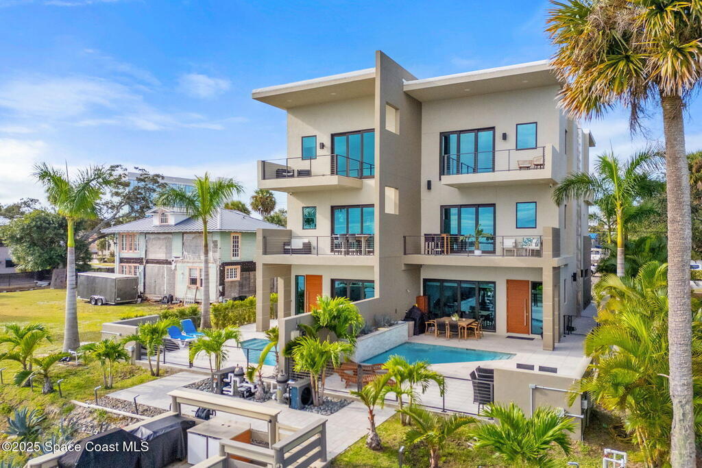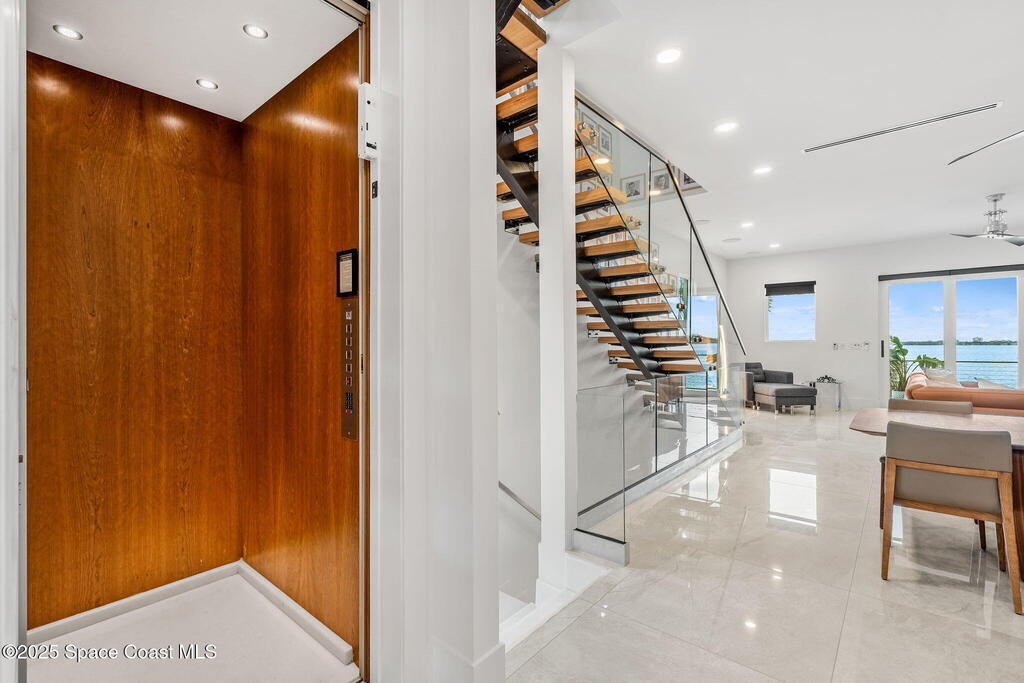 Experience a level of craftsmanship rarely seen on the market. Not a single expense has been spared by this international developer--every inch of this home reflects precision, intention, and luxury. Perched 20 feet above sea level and built like a fortress, this 2023 direct-riverfront residence delivers panoramic Indian River views and European-inspired elegance across 2,936 sq. ft., seamlessly connected by a private elevator to all three levels.Every design element is a statement piece: a sculptural marble-and-oak floating staircase, glass railings, sleek porcelain flooring, and meticulously curated finishes that redefine modern sophistication. The Euro-style kitchen features premium appliances and custom cabinetry designed not just for functionality, but for elevated living and entertaining.Set on a private 0.12-acre riverfront parcel, the estate includes a resort-style pool with waterfall and a 366-ft private dock outfitted with both boat and jet ski lifts.
