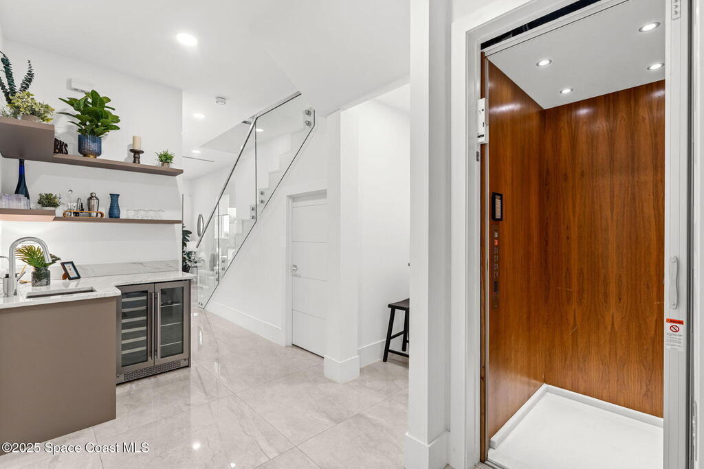 Experience a level of craftsmanship rarely seen on the market. Not a single expense has been spared by this international developer--every inch of this home reflects precision, intention, and luxury. Perched 20 feet above sea level and built like a fortress, this 2023 direct-riverfront residence delivers panoramic Indian River views and European-inspired elegance across 2,936 sq. ft., seamlessly connected by a private elevator to all three levels.Every design element is a statement piece: a sculptural marble-and-oak floating staircase, glass railings, sleek porcelain flooring, and meticulously curated finishes that redefine modern sophistication. The Euro-style kitchen features premium appliances and custom cabinetry designed not just for functionality, but for elevated living and entertaining.Set on a private 0.12-acre riverfront parcel, the estate includes a resort-style pool with waterfall and a 366-ft private dock outfitted with both boat and jet ski lifts.
