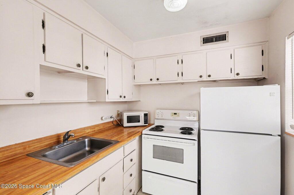 Opportunity knocks in Cape Canaveral! This fixer-upper is listed at a price point not seen in this community since around 2019. A great opportunity for investors, snowbirds, or buyers ready to add their own updates and build equity. Located only two blocks from the beach, the community features a gated courtyard with green space, perfect for relaxing or watching rocket launches while enjoying beachside living. Amenities include a refreshing swimming pool, onsite laundry, and one assigned parking space. The HOA covers cable, internet, water, sewer, trash, pest control, pool, and common area maintenance, and the community is pet-friendly up to 30 lbs. A rare chance to own beachside at an affordable price.