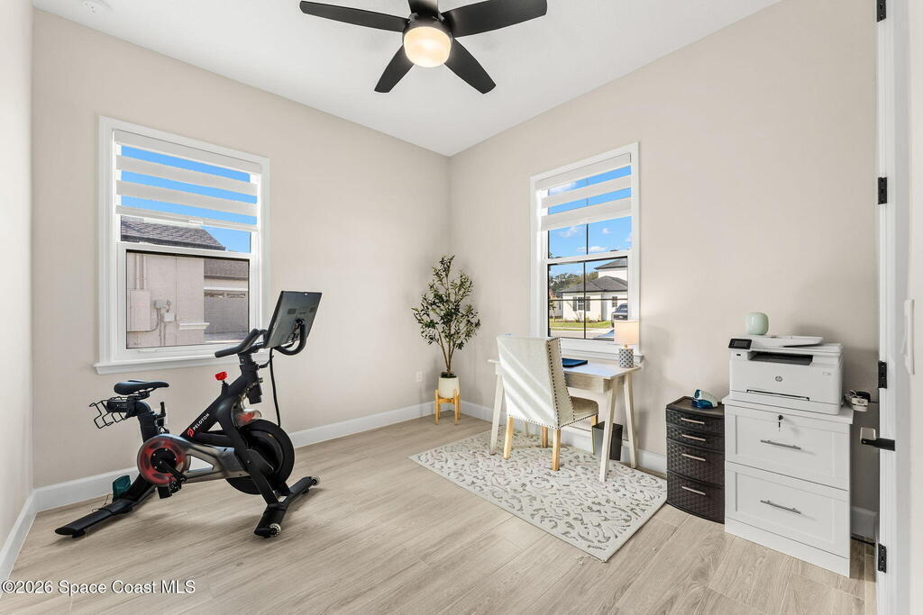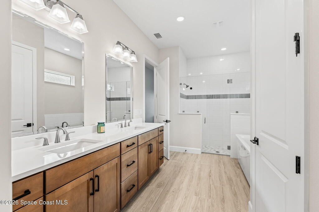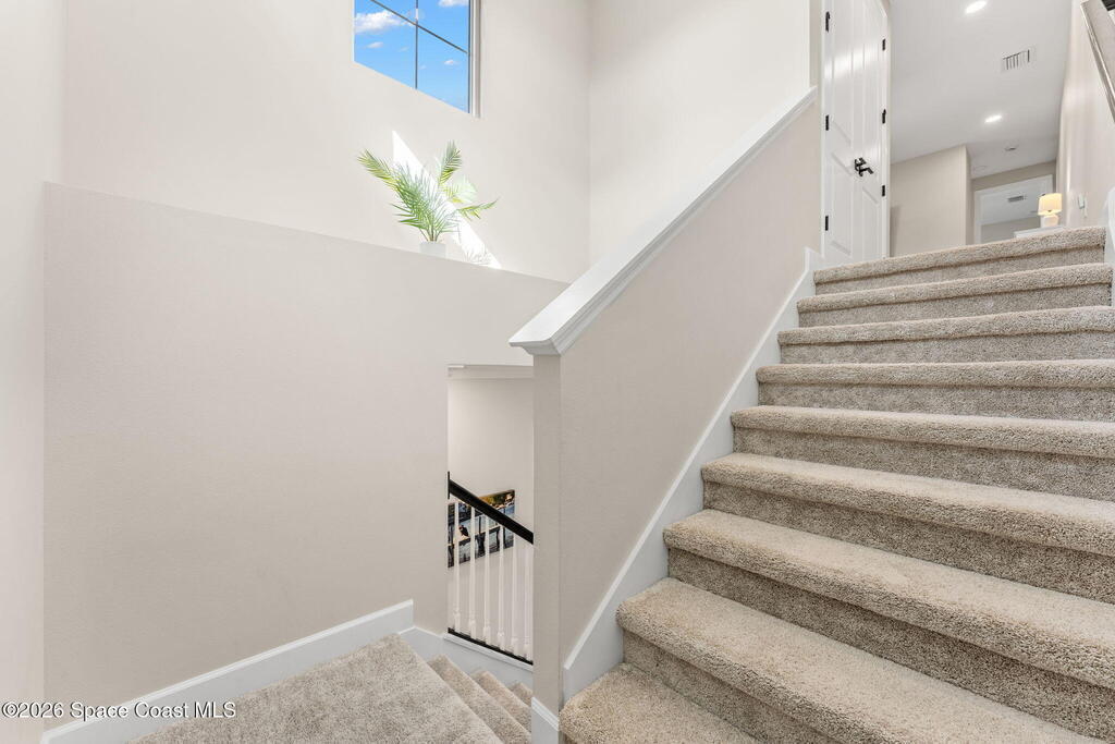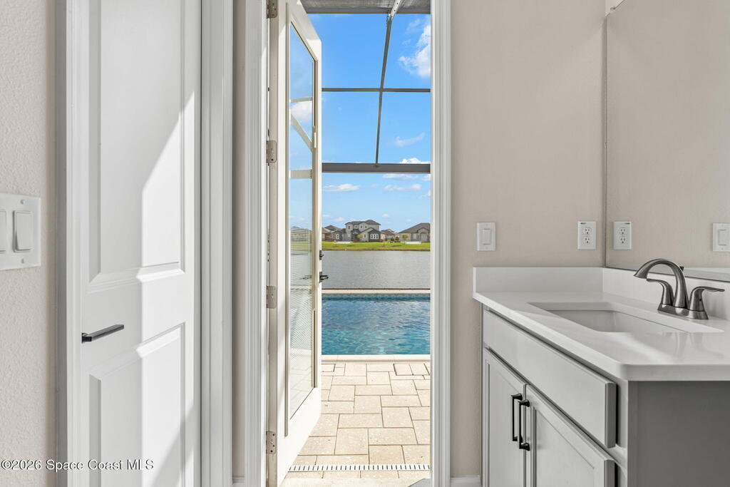 Experience refined living in the gated Laurasia community of Viera, a premier golf cart-friendly neighborhood celebrated for its elegance and convenience. This stunning two-story home offers 5 bedrooms, 4.5 baths, and a side-entry 2-car plus golf cart garage. The open-concept design centers around a gourmet kitchen featuring Level 5 cabinetry, quartz countertops, a pot filler, and a reverse osmosis system. Relax or entertain in the panoramic screened pool area, complete with shell lock pavers for slip-resistant style and fully automated Hayward pool controls for effortless enjoyment. The luxurious primary suite includes a spa-like bath with soaking tub and separate shower. Additional upgrades include a tankless natural gas water heater for endless efficiency. Zoned for A-rated Viera Elementary, Middle, and High School, this home blends exceptional craftsmanship with the vibrant Viera lifestyle.