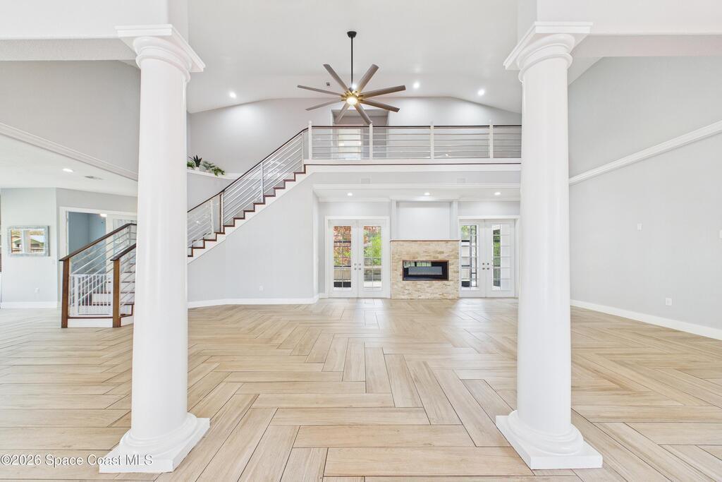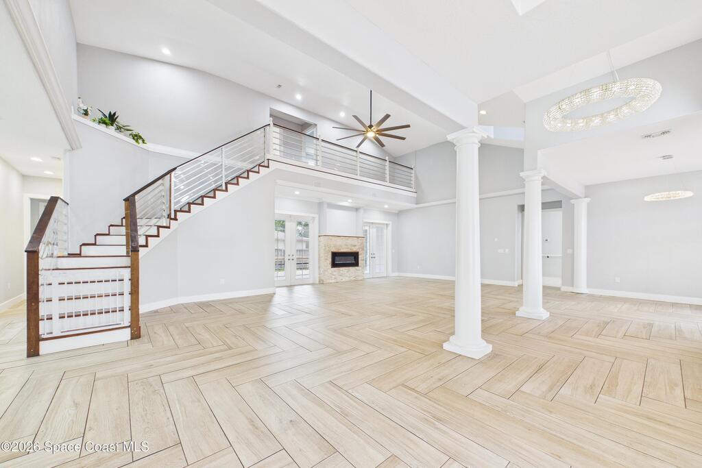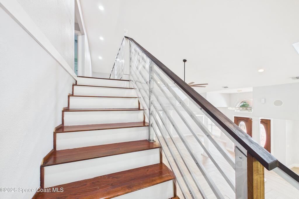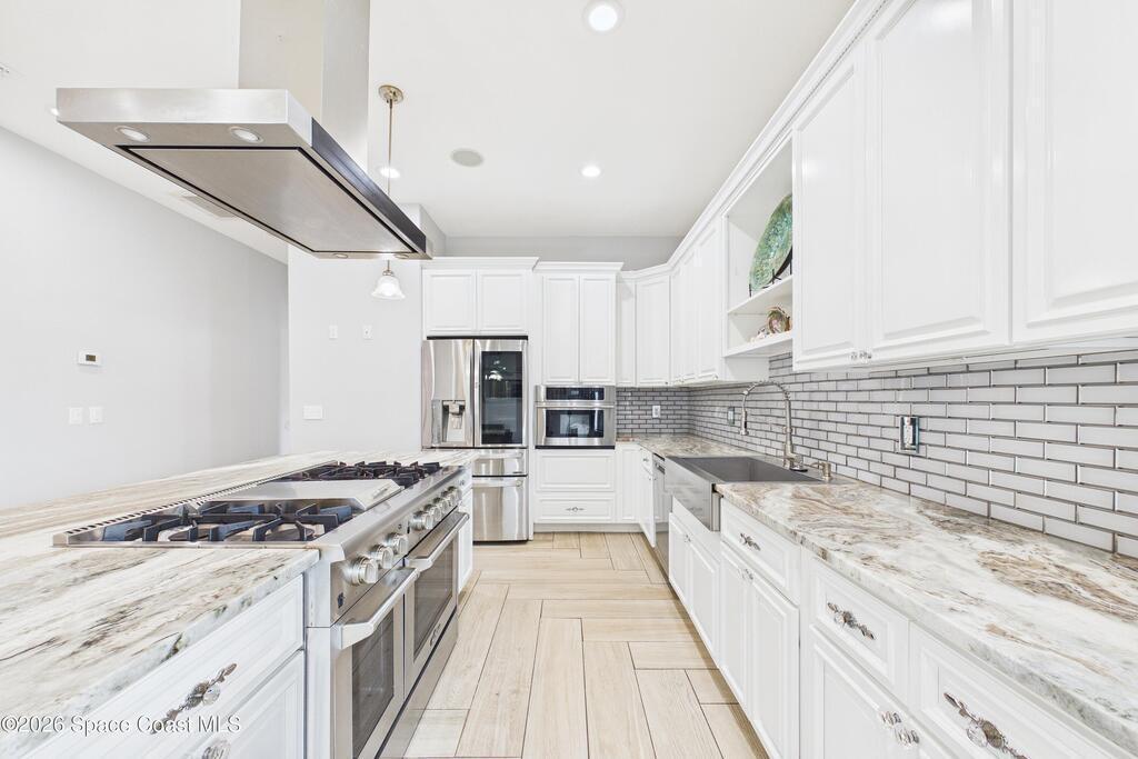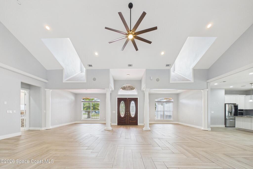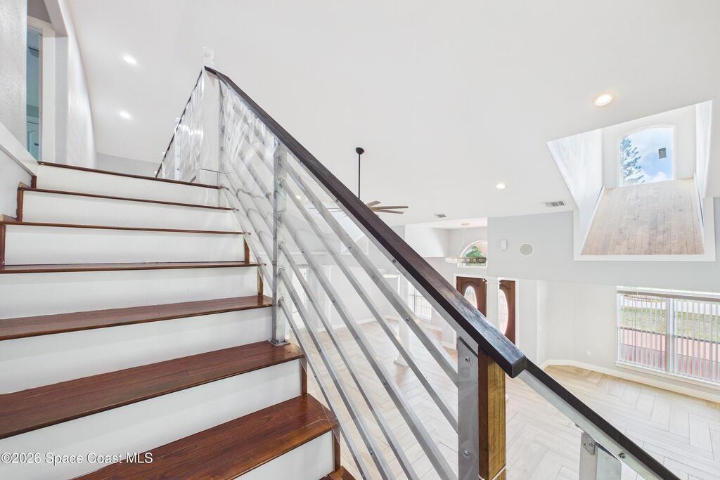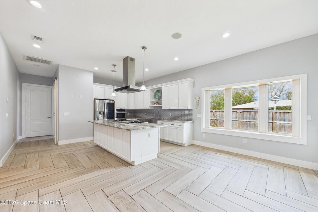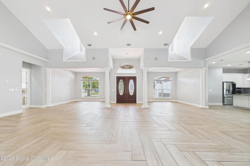 *Some photos digitally staged* Welcome to an exceptional opportunity in the heart of Palm Bay- a beautifully designed 2020 custom home that blends modern luxury, space, and functionality on a generous corner lot.From the moment you arrive, the home's circular driveway, expansive lot, and impressive two-story presence create undeniable curb appeal. Step inside and you'll immediately notice the soaring ceilings, open-concept design, and abundant natural light that make the home feel both grand and inviting.The centerpiece of the home is the chef-inspired kitchen, thoughtfully designed for both everyday living and entertaining. Featuring a large island, breakfast bar seating, double ovens, gas range, and extensive cabinetry, this kitchen flows seamlessly into the main living and dining areas--perfect for hosting gatherings or enjoying relaxed evenings at home.
