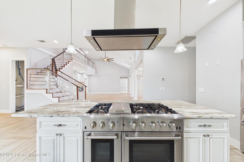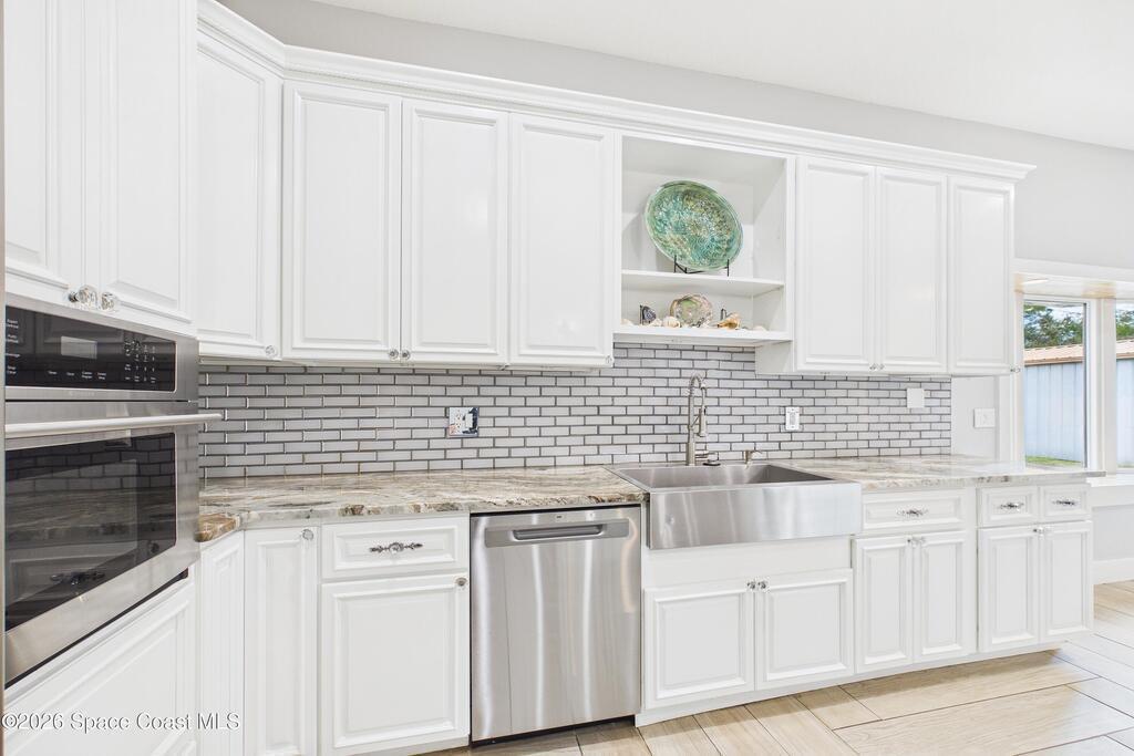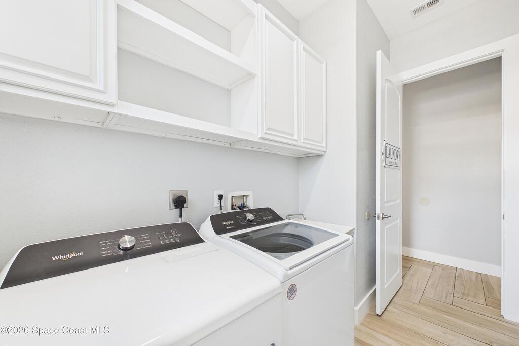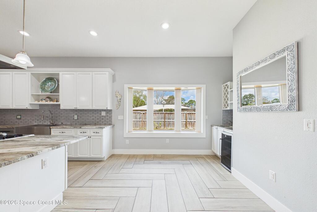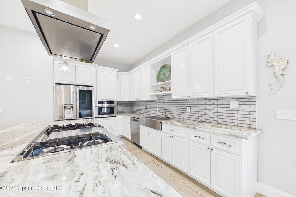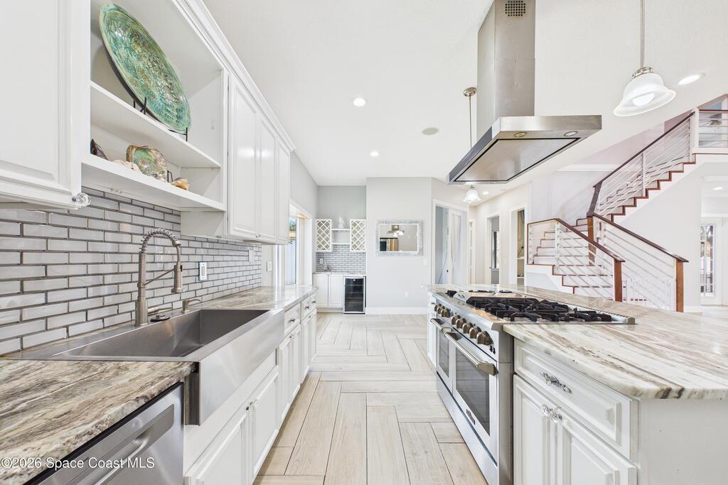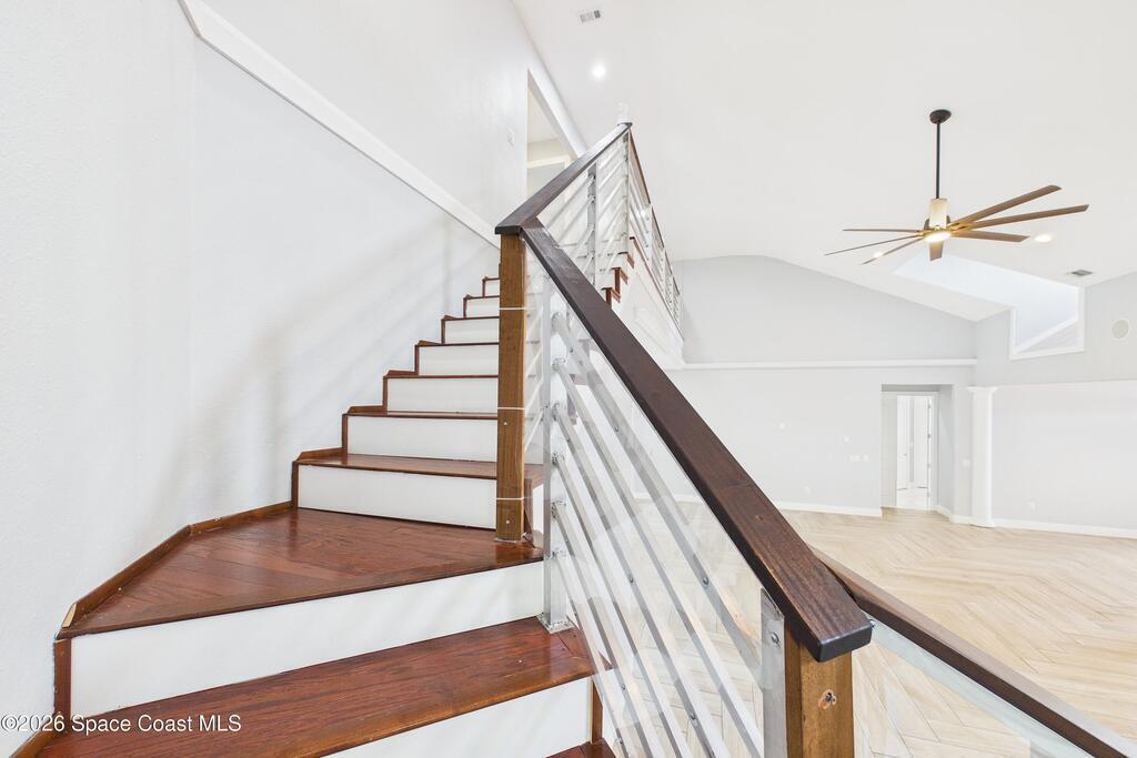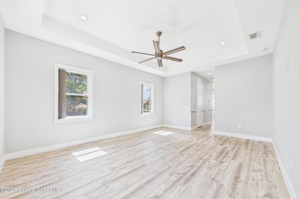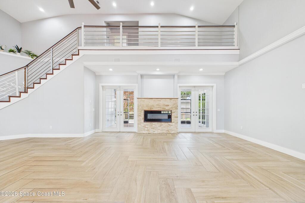 *Some photos digitally staged* Welcome to an exceptional opportunity in the heart of Palm Bay- a beautifully designed 2020 custom home that blends modern luxury, space, and functionality on a generous corner lot.From the moment you arrive, the home's circular driveway, expansive lot, and impressive two-story presence create undeniable curb appeal. Step inside and you'll immediately notice the soaring ceilings, open-concept design, and abundant natural light that make the home feel both grand and inviting.The centerpiece of the home is the chef-inspired kitchen, thoughtfully designed for both everyday living and entertaining. Featuring a large island, breakfast bar seating, double ovens, gas range, and extensive cabinetry, this kitchen flows seamlessly into the main living and dining areas--perfect for hosting gatherings or enjoying relaxed evenings at home.