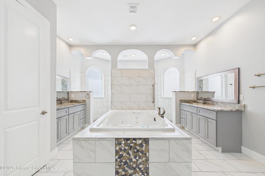 - Interior Features: Breakfast Bar, Breakfast Nook, Built-in Features, Ceiling Fan(s), Eat-in Kitchen, Guest Suite, His and Hers Closets, Kitchen Island, Open Floorplan, Pantry, Primary Bathroom -Tub with Separate Shower, Split Bedrooms, Vaulted Ceiling(s) and Walk-In Closet(s)