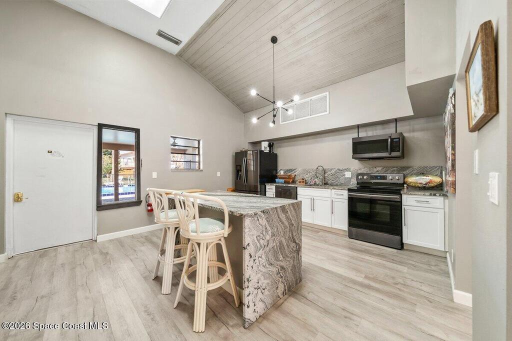 Stunning River Views from your private large screened balcony to watch the Sunsets, Rocket Launches, Dolphin and Manatee. Lovely 2 bedroom 2 bath newly renovated Kitchen and baths with Quartz countertops. Fully furnished tiled Condo includes garage.. Amenities include fishing pier, pools ,Kayak and canoe launching ramp and storage. Close proximity to shops, restaurants, shopping and the beach. Easy drive to Orlando airport, Theme Parks, Kennedy Space Center and Cruise Port.