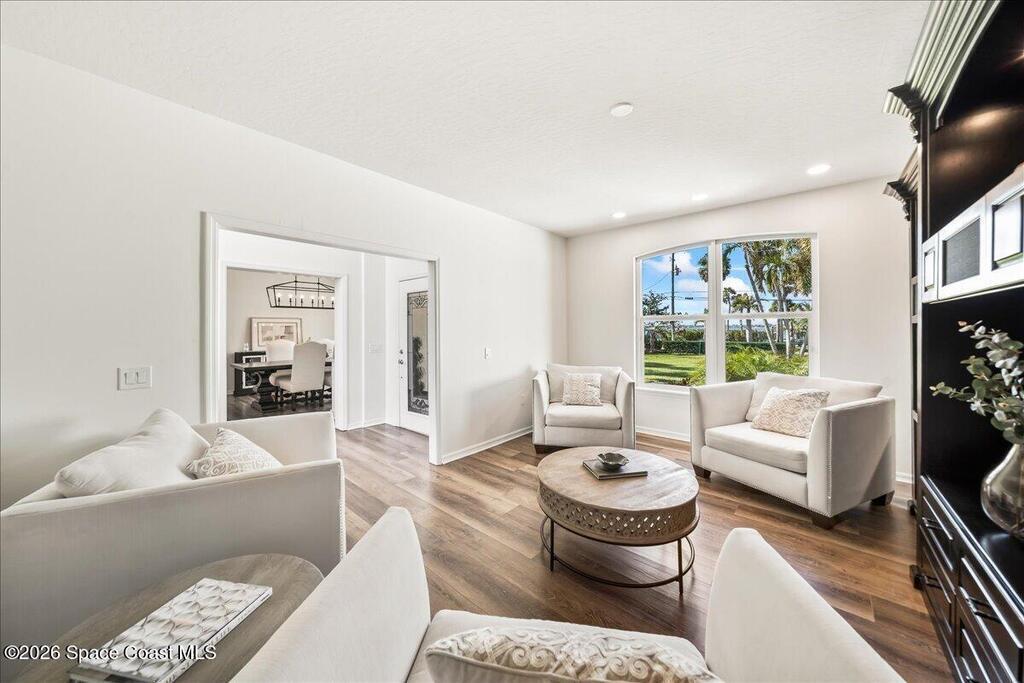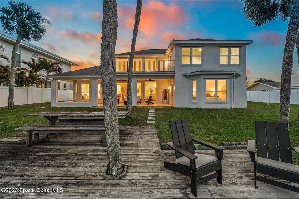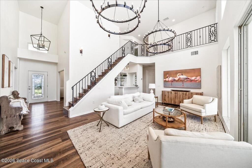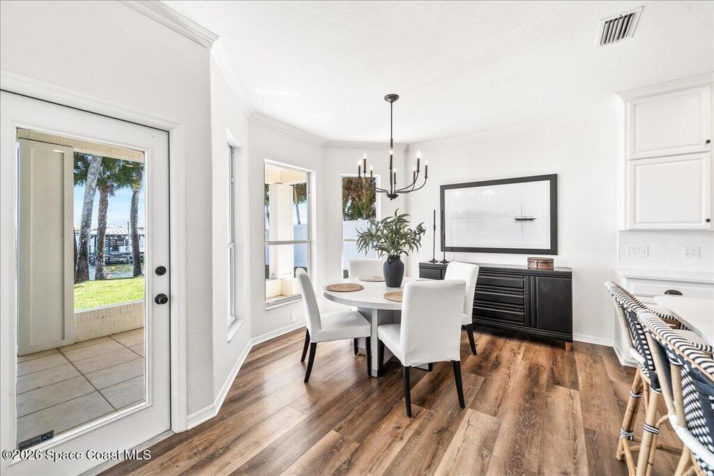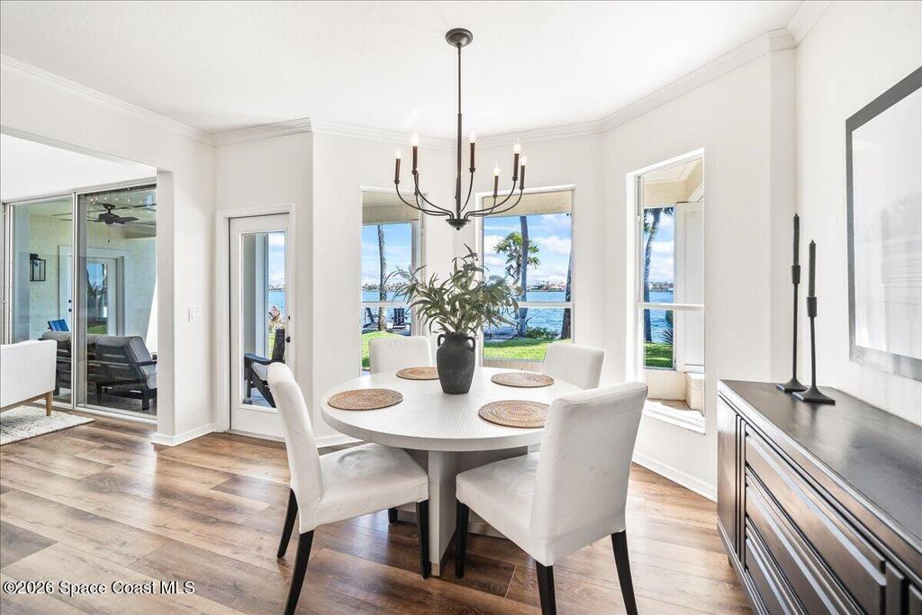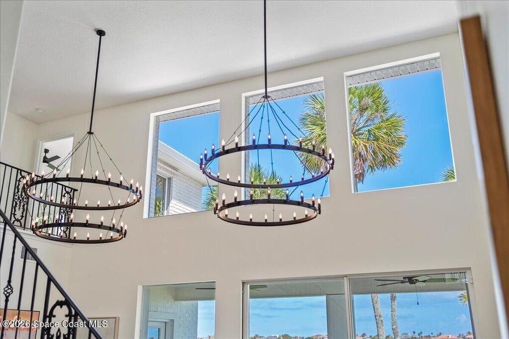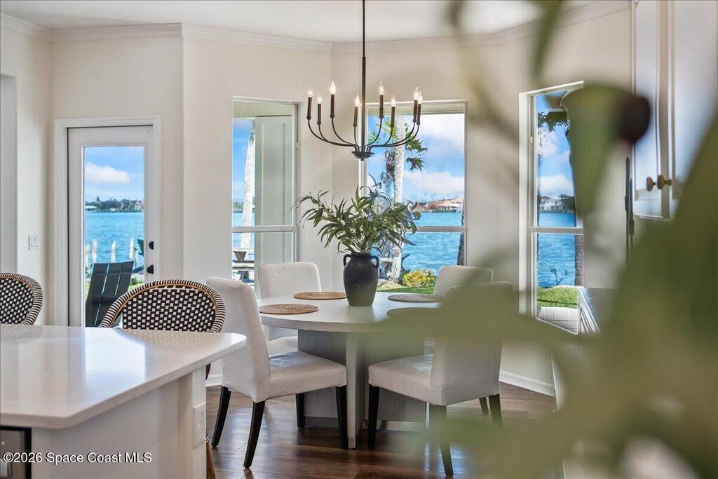 Discover true river-to-river living with over 200 feet of deep water frontage-more than 100 feet on both the Indian and Banana Rivers at this stunning, remodeled retreat. Privately set back on an oversized lot, this home offers 4 bedrooms plus a dedicated office, 3.5 baths, two spacious master suites, and a 3-car garage with ample guest parking. The upgraded kitchen features modern appliances and new countertops, while every bathroom showcases new modern tile and fixtures. Step outside to watch rocket launches from your balcony or take advantage of the 27,000 lb boat lift and jet ski lift with quick access to the Intracoastal and Atlantic. Enjoy a beautiful sunrise or sunset from nearly every room. Mature mango and avocado trees enhance the lush tropical setting, and beaches, dining, and shopping are just minutes away. Close to Melbourne International Airport and 45 min to Orlando. This home has it all! A rare opportunity for authentic Florida river- to- river waterfront living!