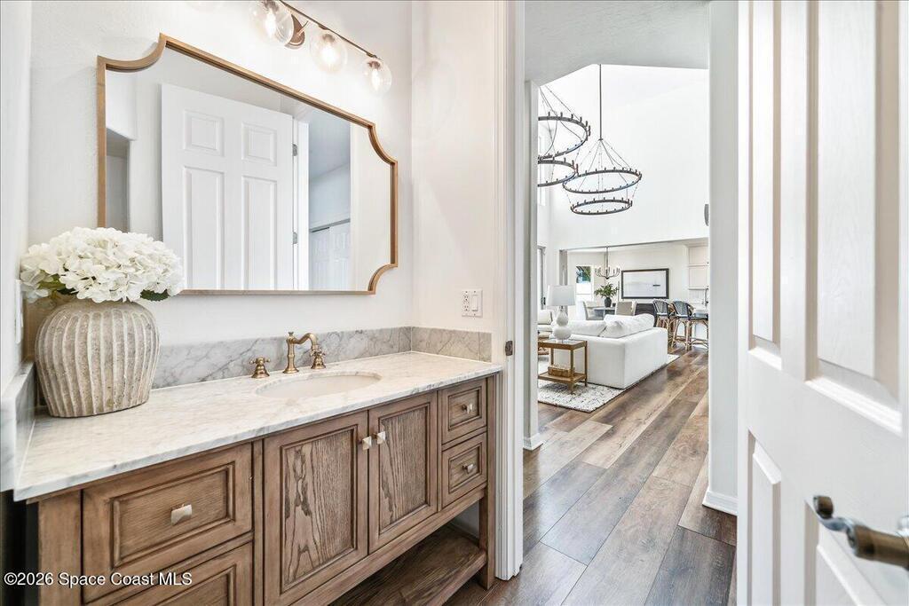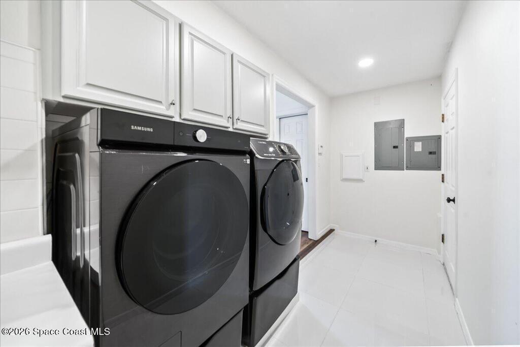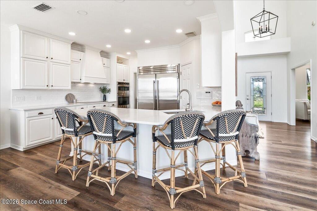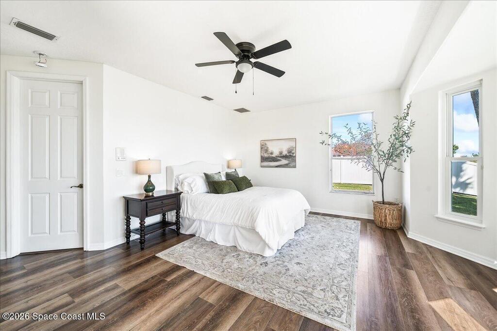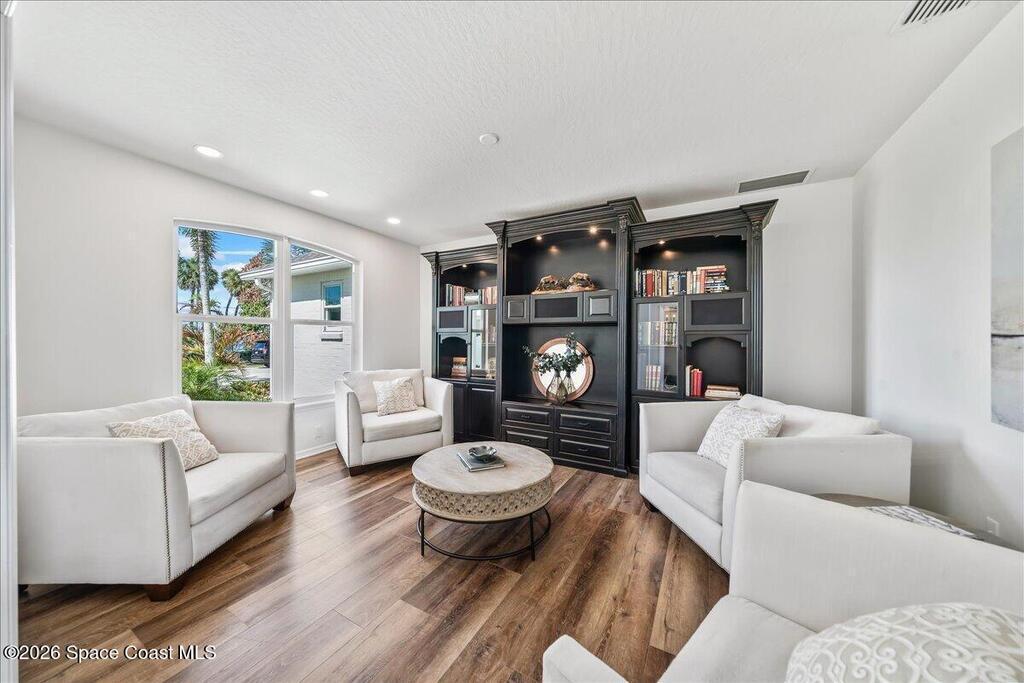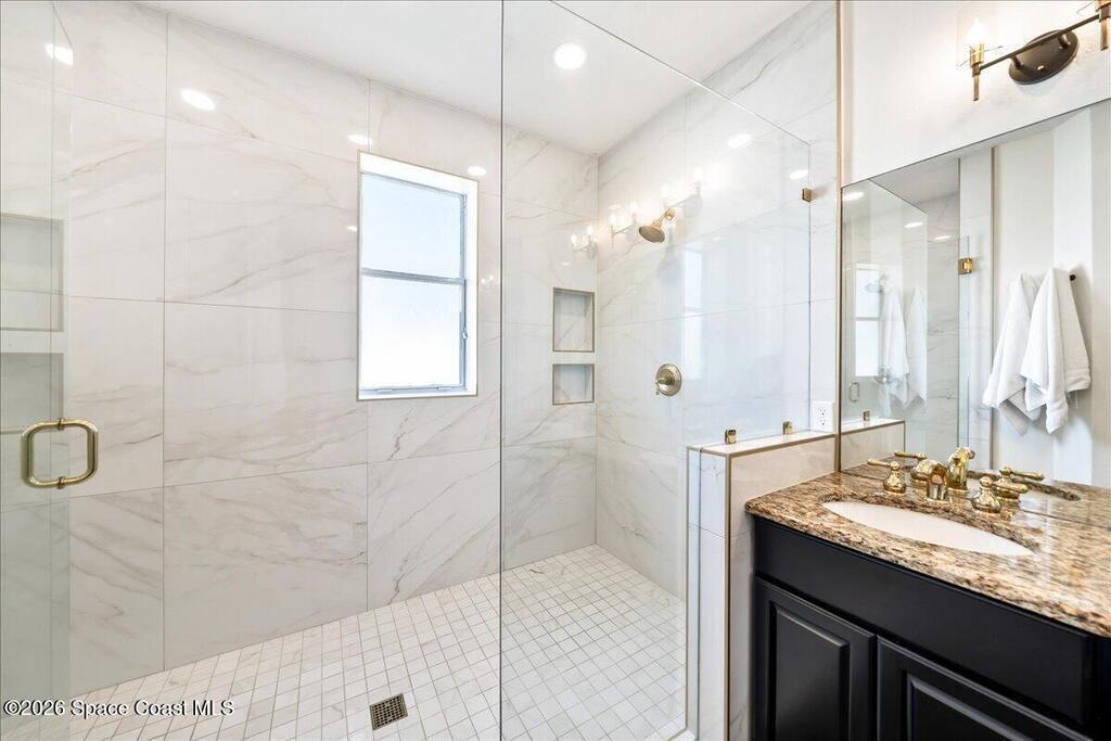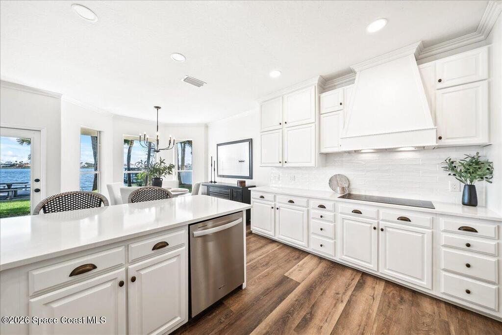 Discover true river-to-river living with over 200 feet of deep water frontage-more than 100 feet on both the Indian and Banana Rivers at this stunning, remodeled retreat. Privately set back on an oversized lot, this home offers 4 bedrooms plus a dedicated office, 3.5 baths, two spacious master suites, and a 3-car garage with ample guest parking. The upgraded kitchen features modern appliances and new countertops, while every bathroom showcases new modern tile and fixtures. Step outside to watch rocket launches from your balcony or take advantage of the 27,000 lb boat lift and jet ski lift with quick access to the Intracoastal and Atlantic. Enjoy a beautiful sunrise or sunset from nearly every room. Mature mango and avocado trees enhance the lush tropical setting, and beaches, dining, and shopping are just minutes away. Close to Melbourne International Airport and 45 min to Orlando. This home has it all! A rare opportunity for authentic Florida river- to- river waterfront living!