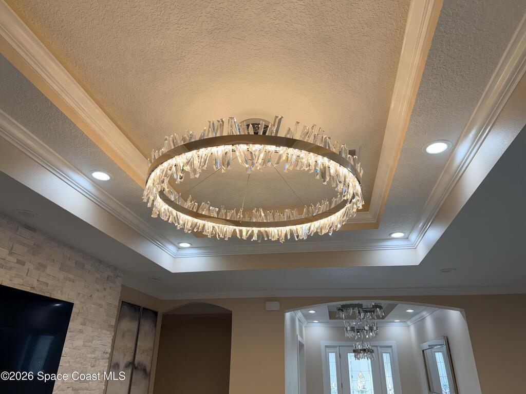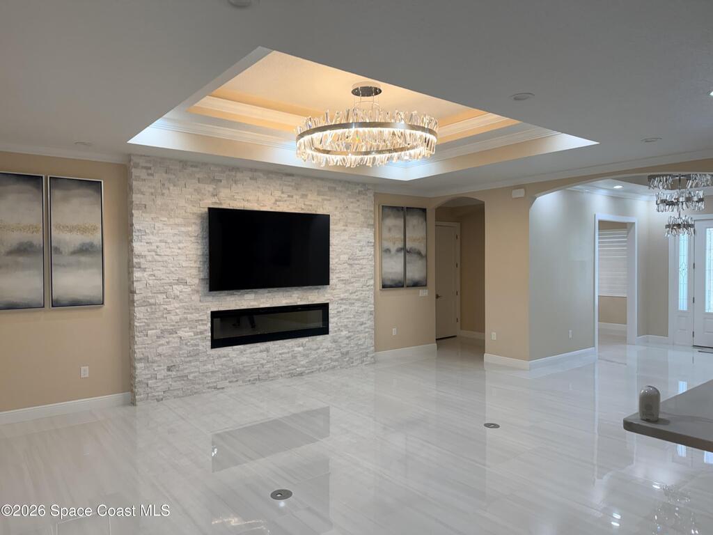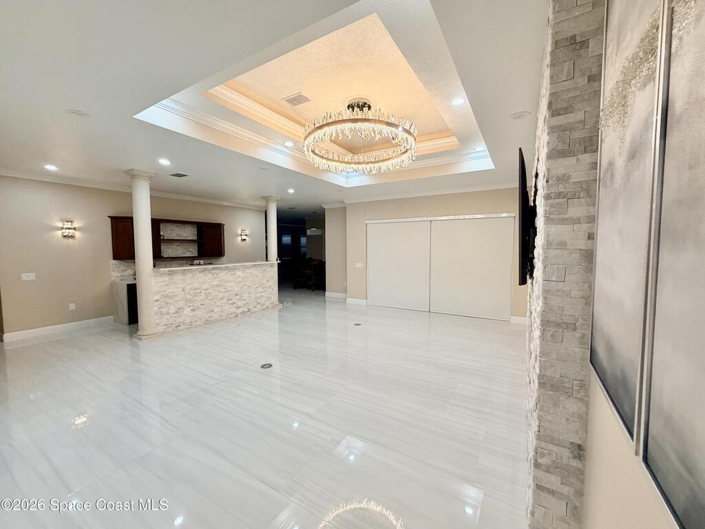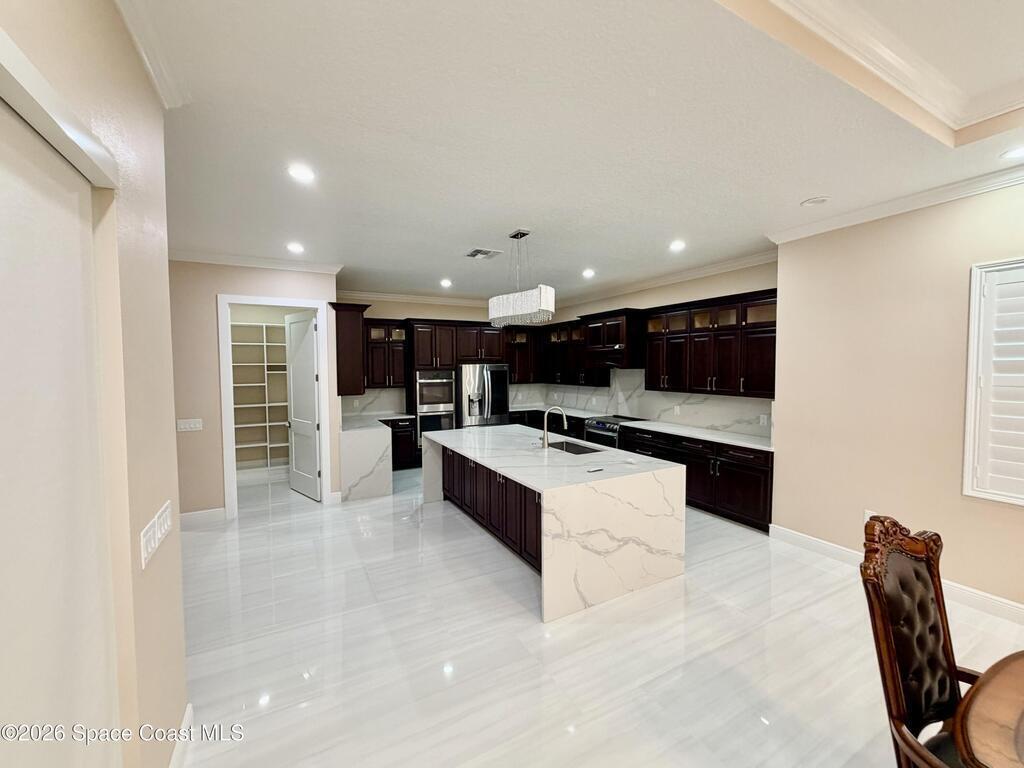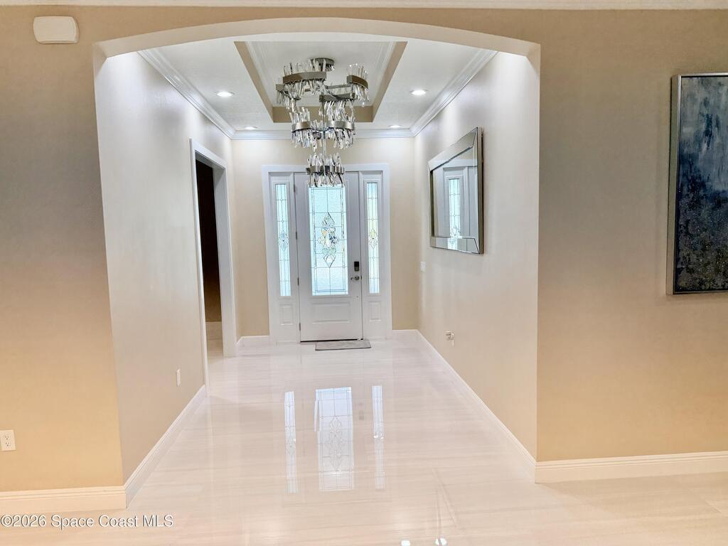Contractor owner build in 2023 with warranties still in place, this custom home showcases top-tier materials and craftsmanship throughout, including spray foam insulation, fiberglass reinforced cement slab, solid poured concrete pillars, and humidity-reducing A/C system. High-end finishes abound, such as crown molding, epoxy garage floor, impact-resistant windows and exterior doors, and custom chandeliers. Enjoy ample space for outdoor entertaining with an extended lanai and a fully fenced backyard. With No HOA and abundant paved parking, this energy-efficient home offers nearly 4,000 square feet of climate-controlled living space with noticeably low electric bills. Additional highlights include a dedicated office and a separate exercise room. Ideally located just 45 minutes from Orlando International Airport, 8 minutes to the beach, and 20 minutes to Cape Canaveral.