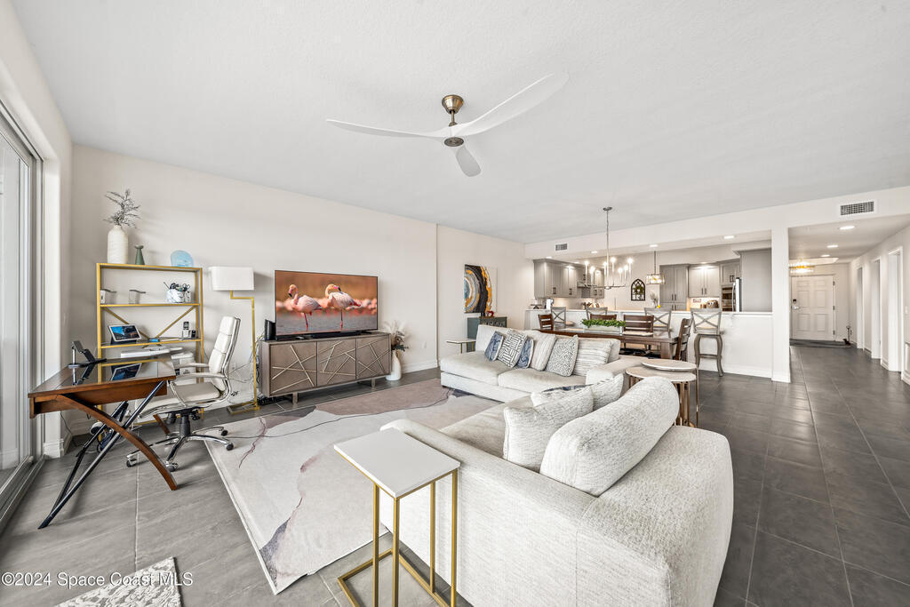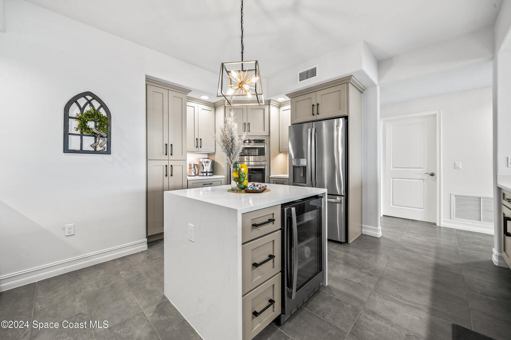 This luxurious 3-bedroom, 3-bath condo, built in 2022, offers 2,082 sq. ft. of living space and a 165 sq. ft. balcony with breathtaking Indian River and Indialantic skyline views. The home features upgraded tile floors throughout, impact-resistant glass sliders, and a chef's kitchen with a waterfall island, quartz backsplash, soft-close maple cabinetry, GE appliances, and a beverage fridge. The primary suite includes dual walk-in closets, separate vanities, and a large shower. The spacious laundry room adds extra cabinetry and a soaking sink. Located in a gated community with just 68 units, amenities include a heated pool, activity room, high-speed elevators, and guest parking. Association dues cover cable and internet. Minutes from downtown Melbourne, the beach, and only an hour from Orlando, this condo offers the perfect blend of luxury and convenience.