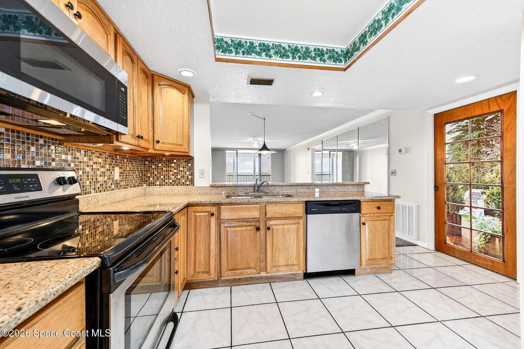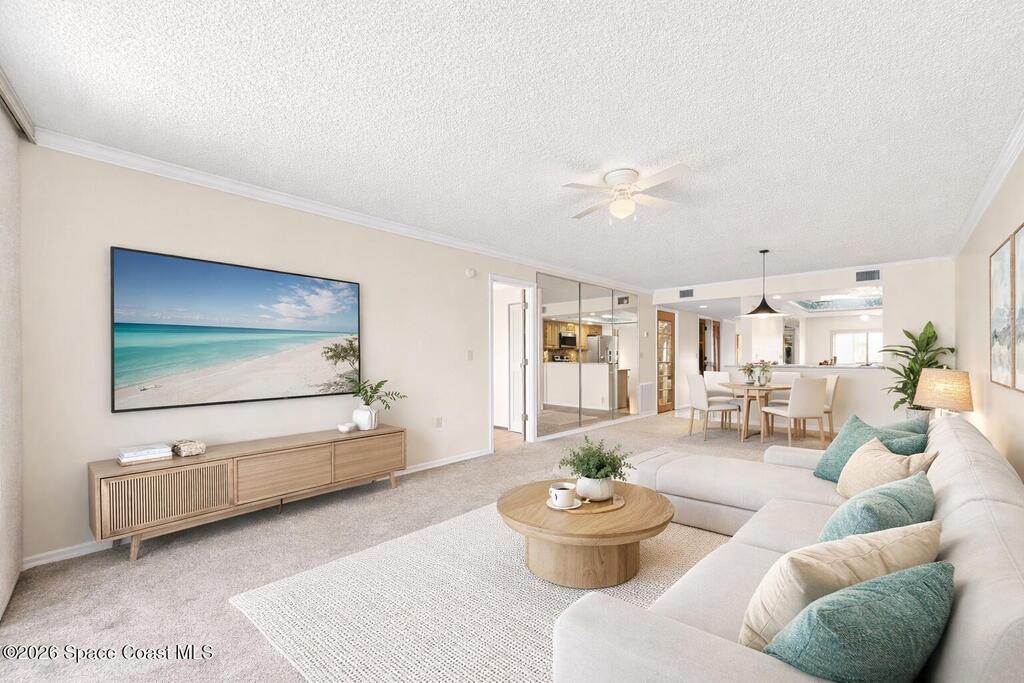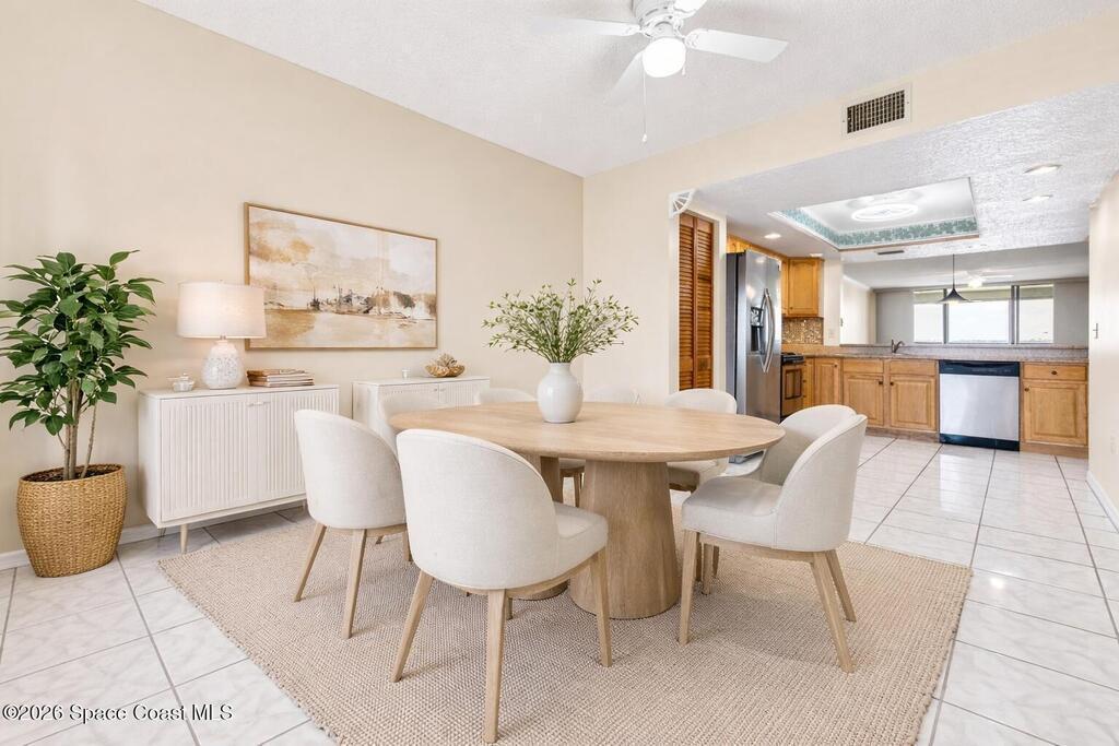RIVERFRONT views that deserve their own postcard in beautiful Cape Canaveral. From your private balcony, enjoy front-row river views stretching far south along the water, with cruise ships visible as they pass near Port Canaveral. Imagine waking up and stepping onto the balcony from your riverfront bedroom with coffee in hand, taking in horizon-to-horizon views. Glowing sunsets, dolphins in the water, even the occasional rocket launch rising over the Space Coast sky make this waterfront lifestyle unforgettable. Wood kitchen cabinets, solid surface countertops & stainless steel appliances add beauty to this unit. The guest bath features a Jack/Jill design connecting to the second bedroom. Resort-style amenities: a waterfront gazebo, fishing pier, boat ramp, tennis, pickleball, two pools (one heated), sauna, clubhouse, car wash area, & a private one-car garage. Walk to the beach.Minutes from some of the area's favorite local restaurants, and 45 minutes from Orlando International Airport