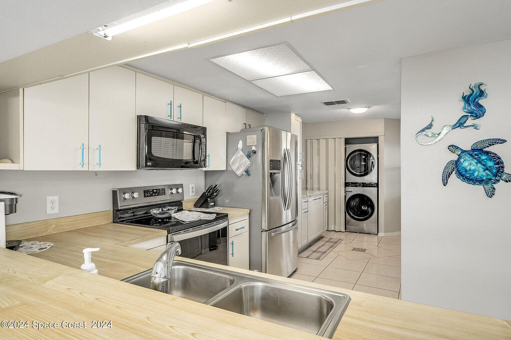 Experience Florida living at its finest in this beautiful end-unit condo with breathtaking views of the Banana River in a coveted waterfront community of Rock Pointe. Watch the Cocoa Beach Christmas Boat Parade from your very own porch, which cantilevers out for completely unobstructed views. Inside, you'll find laminate flooring throughout the living areas, crisp neutral kitchen cabinets, and newer appliances for a modern touch in the kitchen. The owner's suite features a spacious walk-in closet, dual sinks, a standing shower, and a garden tub, perfect for relaxing while enjoying waterfront views. Wake up to serene river views and step out onto the porch via private sliding door access. The revamped laundry room adds extra convenience. Owners just added brand new Hurricane shutters for peace of mind. Don't miss this slice of paradise with unbeatable water views!