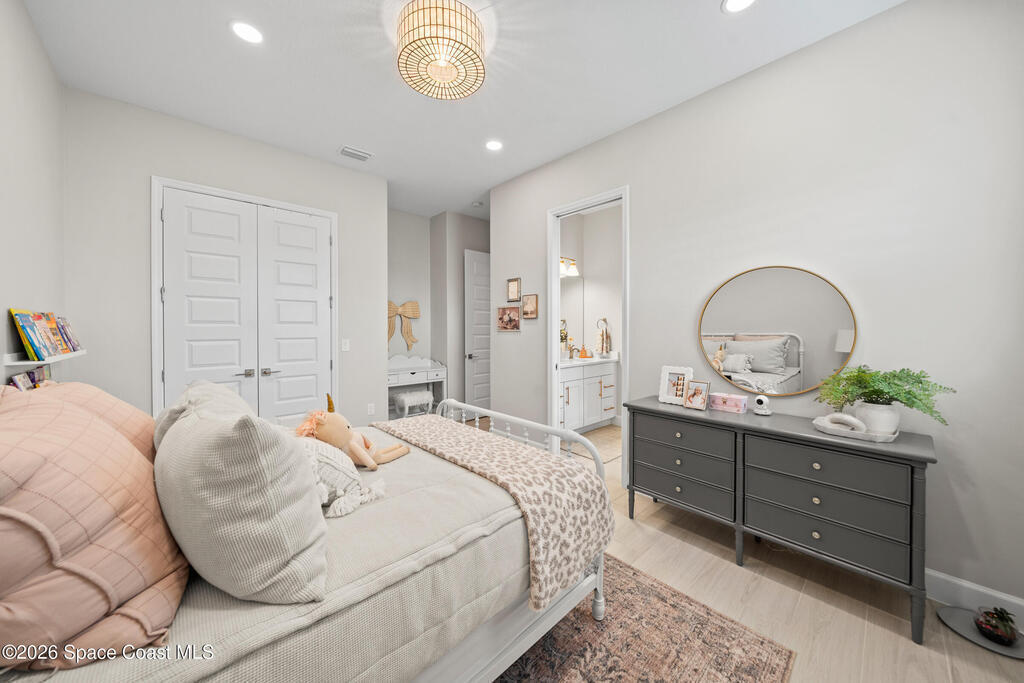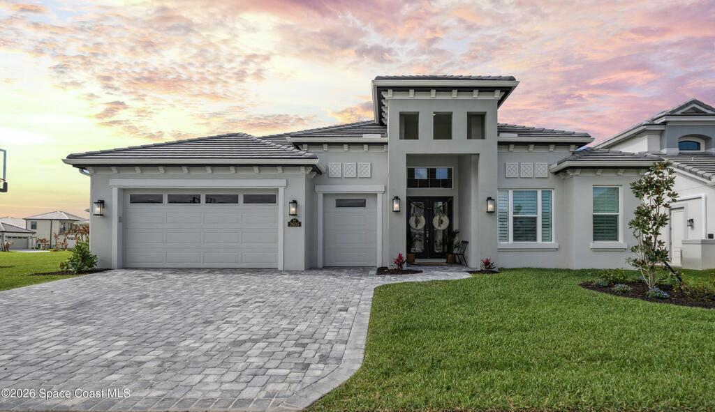 Why wait to build when you can own this stunning Tamber model in the gated community of Laurasia! Located in a highly sought-after, golf cart-friendly neighborhood just minutes from A-rated schools, this award-winning 4 bedroom, 3.5 bath home on a large corner lot, offers an exceptional open layout with an oversized bonus room & unrivaled living/entertaining space. Soaring 12-foot ceilings, wood beam accents & tile flooring create a bright, elegant ambiance throughout. A show-stopping custom entryway storage feature was just put in as an added feature! The dreamy kitchen features gas appliances, quartz countertops & premium finishes, seamlessly flowing into the main living areas. Natural light pours in through the expansive slider and impact windows. The primary suite offers both a soaking tub and luxury shower for relaxing. Step out back to your private oasis with a saltwater pool and fully equipped summer kitchen. Close to shopping, dining and endless entertainment!