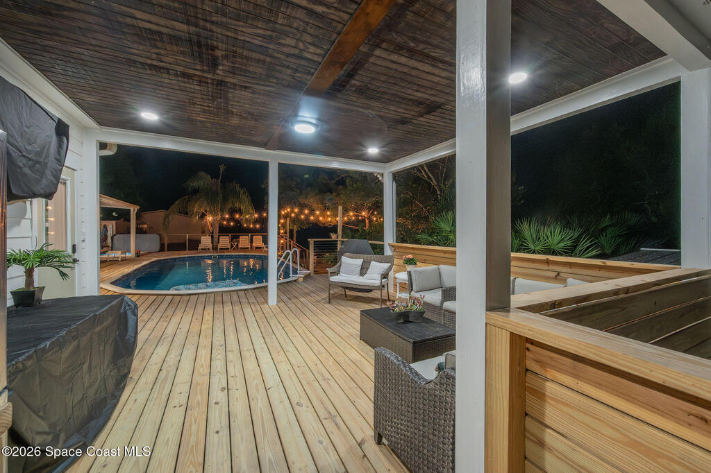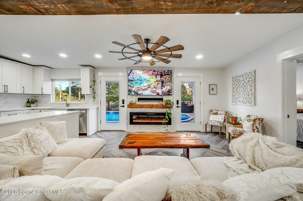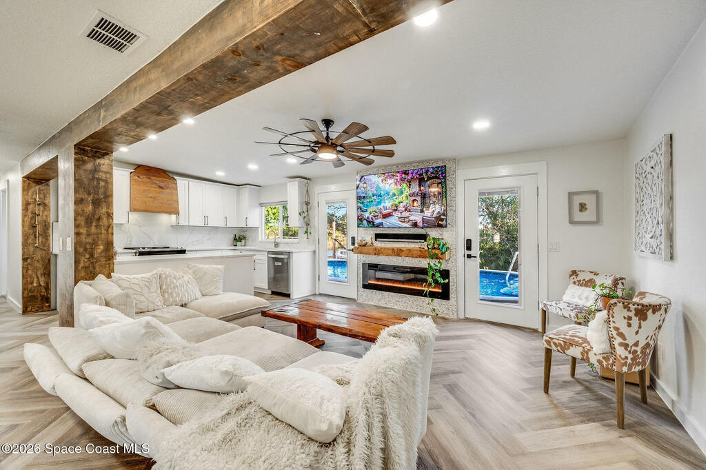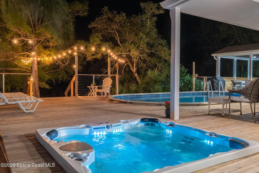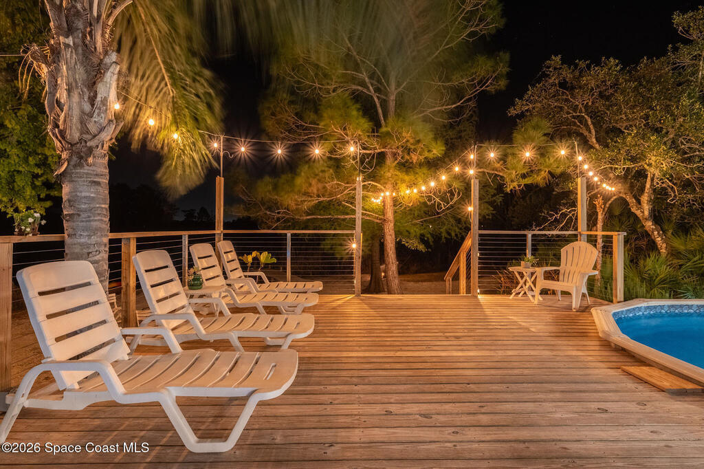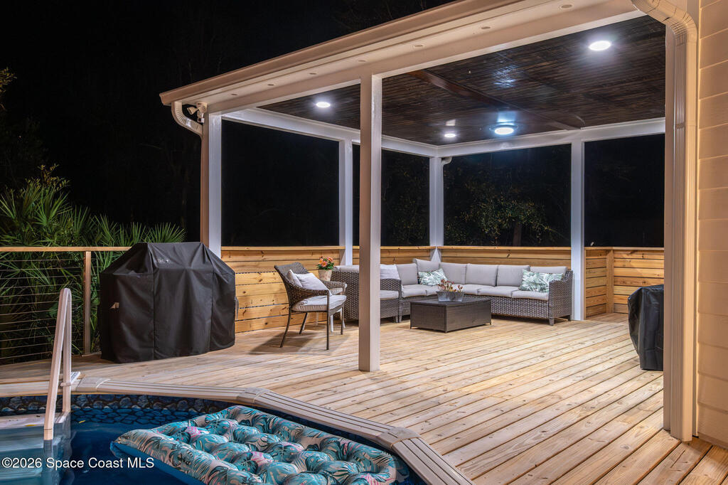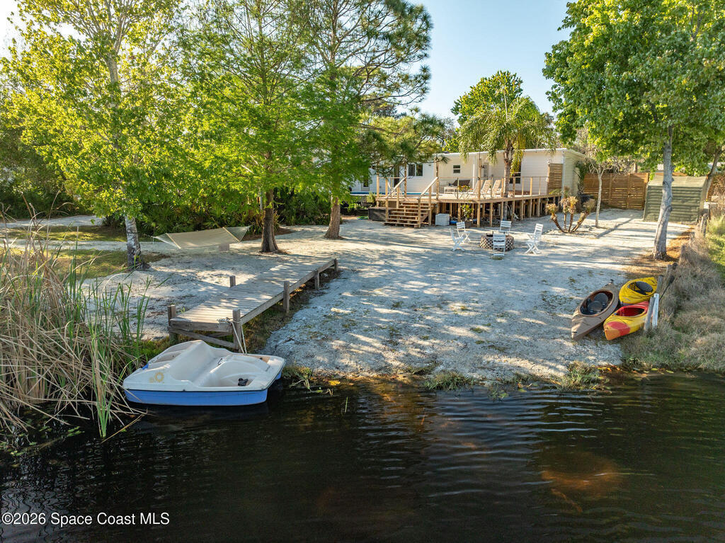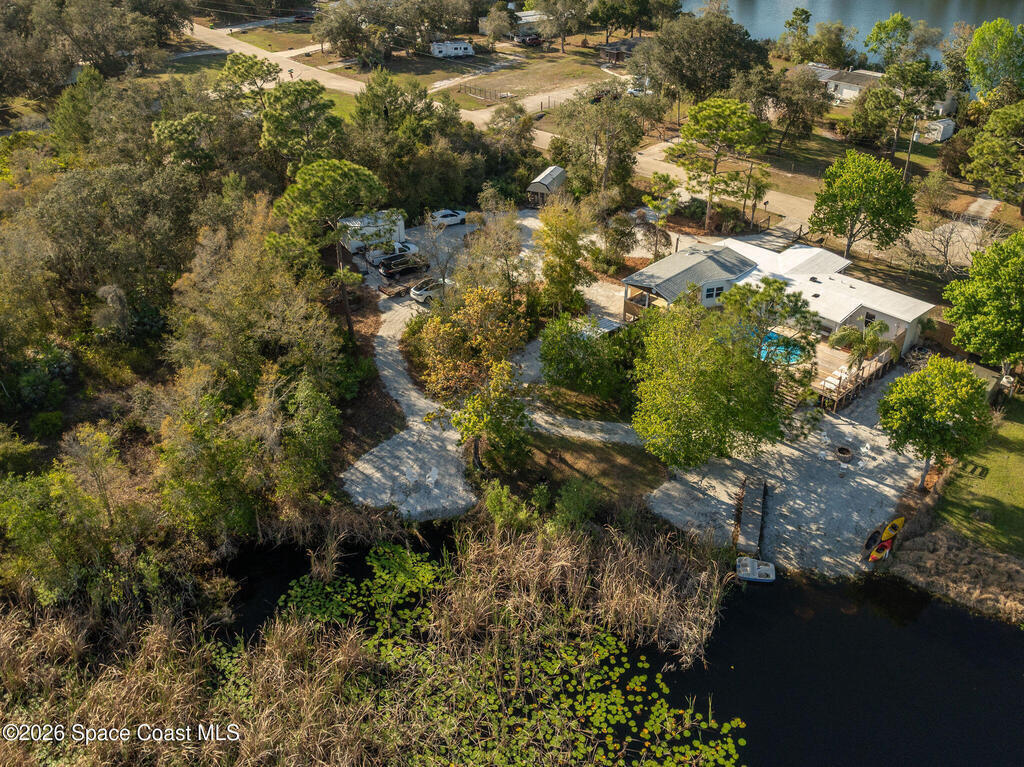 Tucked along the shoreline of Deer Lake, this exceptional lakefront retreat offers a rare blend of privacy, nature, & modern comfort. Situated on 1.24 acres with 194 feet of shoreline spanning a natural bend of Deer Lake, the property offers enhanced water views & a sense of privacy rarely found on standard lakefront lots. The property features expansive water views, including a scenic island, & a peaceful setting surrounded by natural landscape. The land directly across the lake is currently owned by Brevard County & connects to the expansive Buck Lake Wildlife Management Area, spanning more than 9,000 acres across Brevard & Volusia County, enhancing the property's natural views & sense of privacy.Outdoor living is a centerpiece of the home, highlighted by a 1,300 square foot wraparound deck, along with a pool & spa, private beach area, dock, & a covered lakeside cabana featuring a wood-accent ceiling, lounge area, outdoor kitchen space with refrigerator, & television setup -- ideal