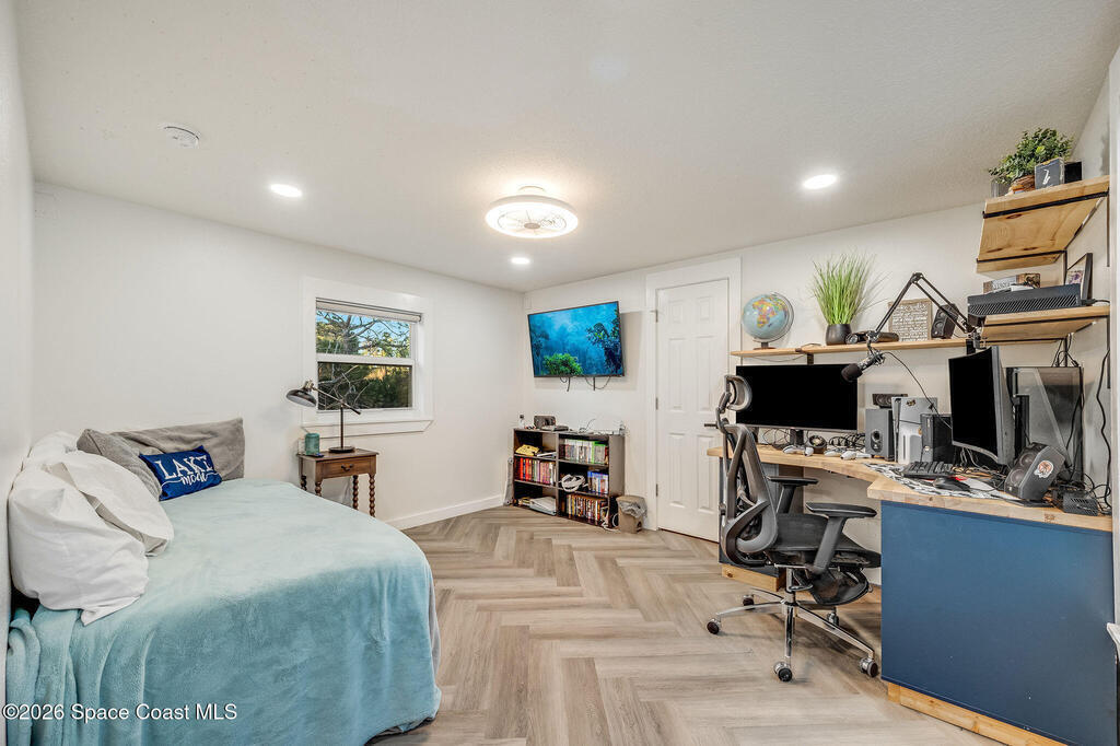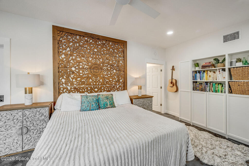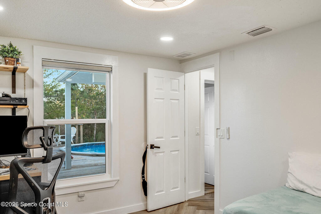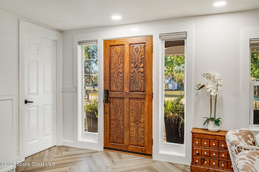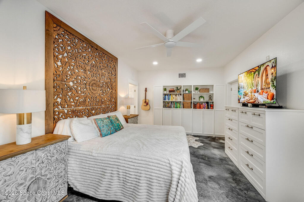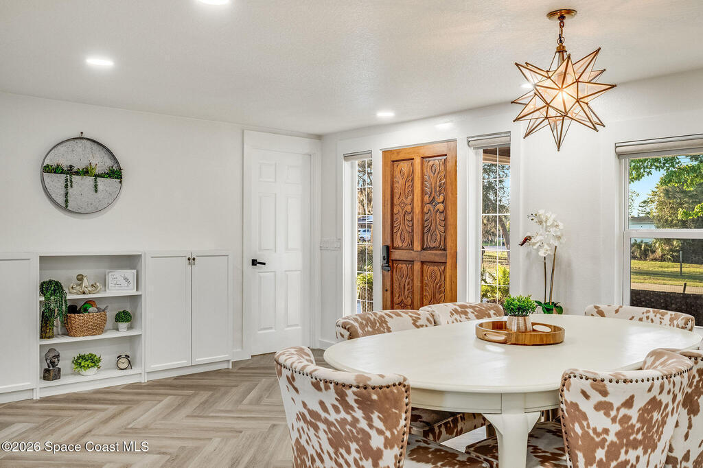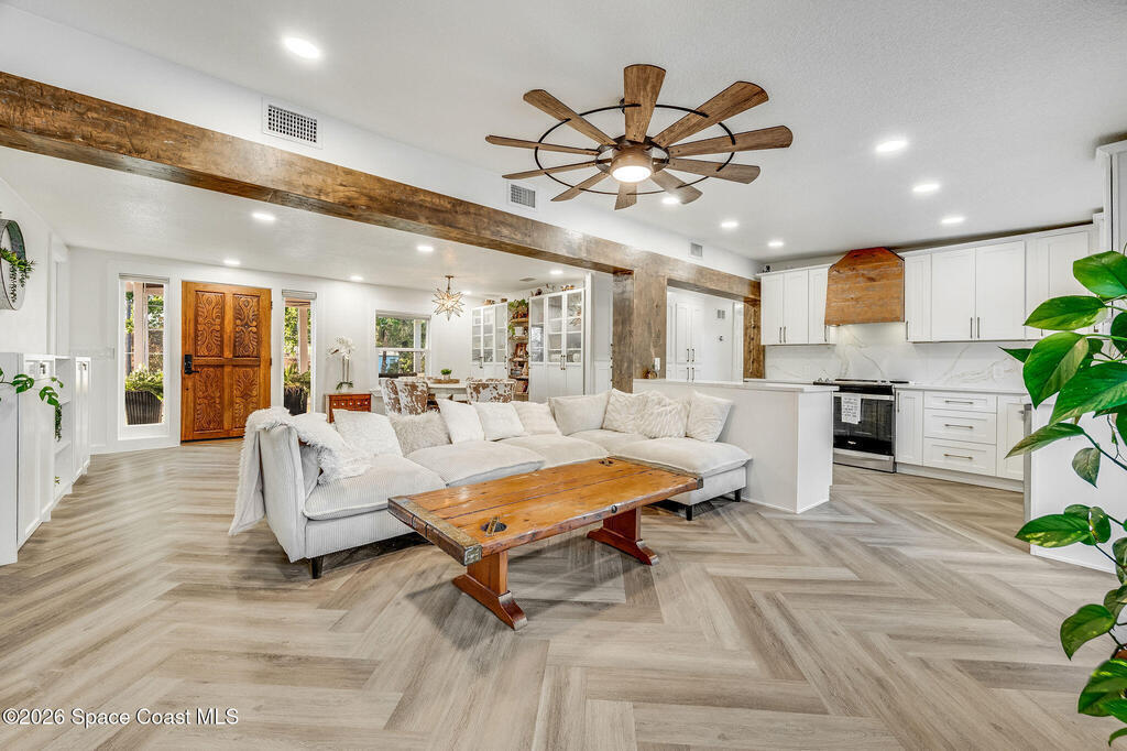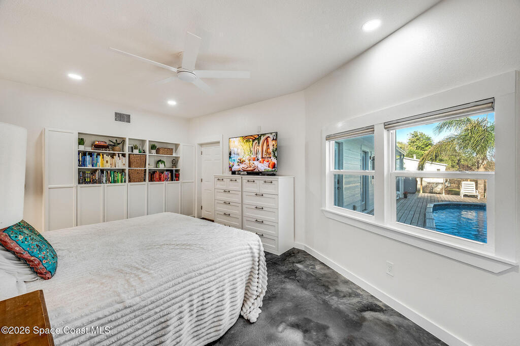 Tucked along the shoreline of Deer Lake, this exceptional lakefront retreat offers a rare blend of privacy, nature, & modern comfort. Situated on 1.24 acres with 194 feet of shoreline spanning a natural bend of Deer Lake, the property offers enhanced water views & a sense of privacy rarely found on standard lakefront lots. The property features expansive water views, including a scenic island, & a peaceful setting surrounded by natural landscape. The land directly across the lake is currently owned by Brevard County & connects to the expansive Buck Lake Wildlife Management Area, spanning more than 9,000 acres across Brevard & Volusia County, enhancing the property's natural views & sense of privacy.Outdoor living is a centerpiece of the home, highlighted by a 1,300 square foot wraparound deck, along with a pool & spa, private beach area, dock, & a covered lakeside cabana featuring a wood-accent ceiling, lounge area, outdoor kitchen space with refrigerator, & television setup -- ideal