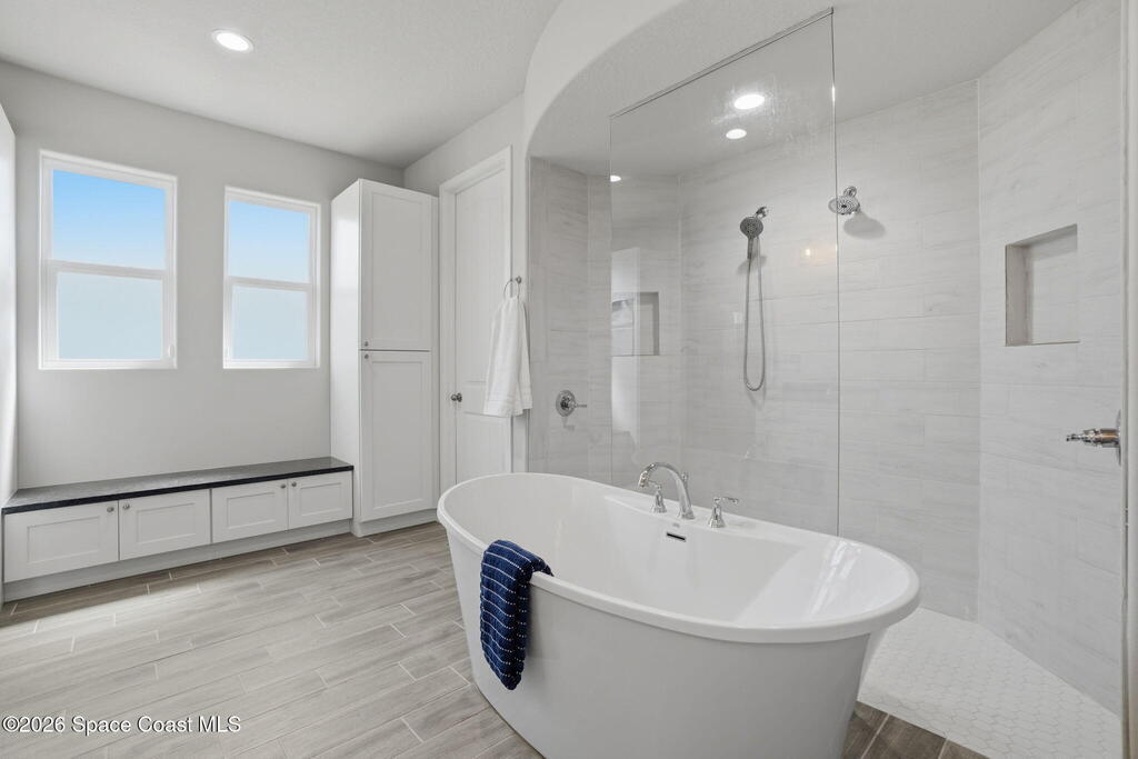 - Interior Features: Built-in Features, Ceiling Fan(s), Guest Suite, Kitchen Island, Open Floorplan, Pantry, Primary Bathroom -Tub with Separate Shower, Primary Downstairs, Split Bedrooms and Walk-In Closet(s)
