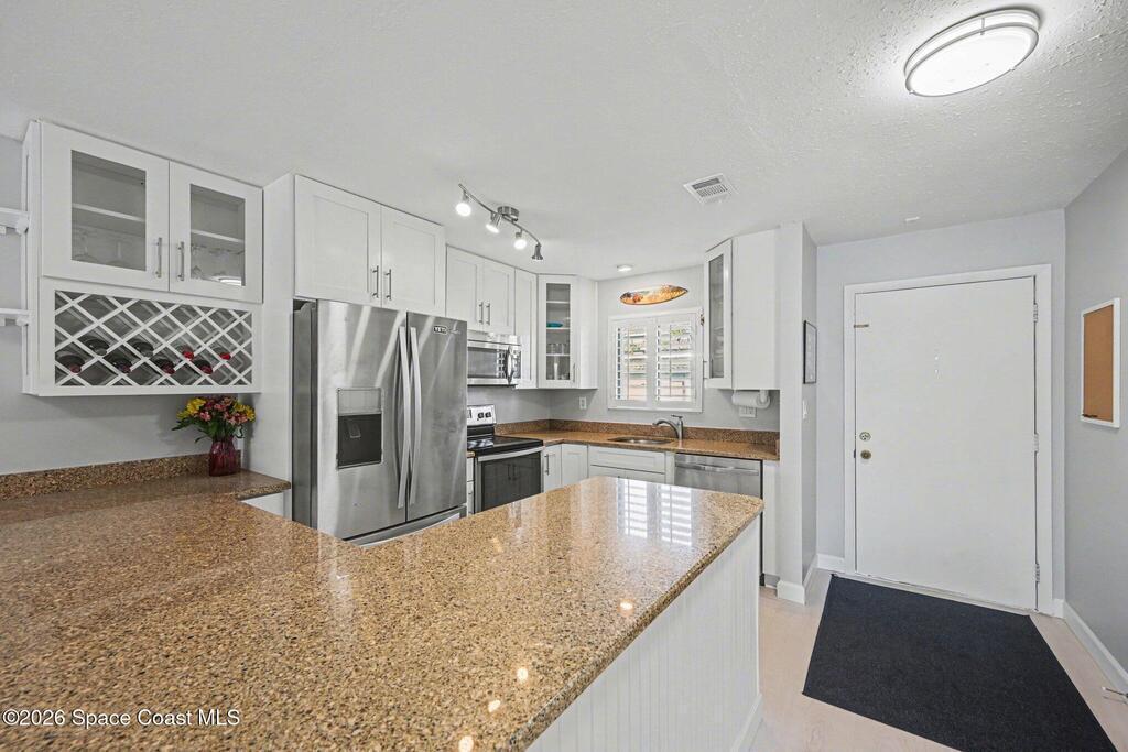 Your new home is your ideal vacation location. Enter into a bright and inviting open-concept living space with new flooring, and updated kitchen that captures the essence of coastal living. This 2-bedroom, 2-bath ground-floor residence offers a combination washer/dryer that saves space and convenience, plus Hurricane shutters to protect your home. The interior flows seamlessly out to your private screened patio to enjoy your morning coffee or unwind in the evening. At The Four Seasons you'll enjoy many amenities, 2 pools (1 heated), picnic area and private boat launch to Banana River, ideal for kayaking, paddle boarding or a view of the unforgettable rocket launches A private storage locker and the bonus of a garage add the convenience of storing your car and beach gear. Whether you're looking for a full-time home or seasonal escape, the furnished condo is ready to move right in. And when you want to explore, you are within walking distance to the beach and several restaurants.