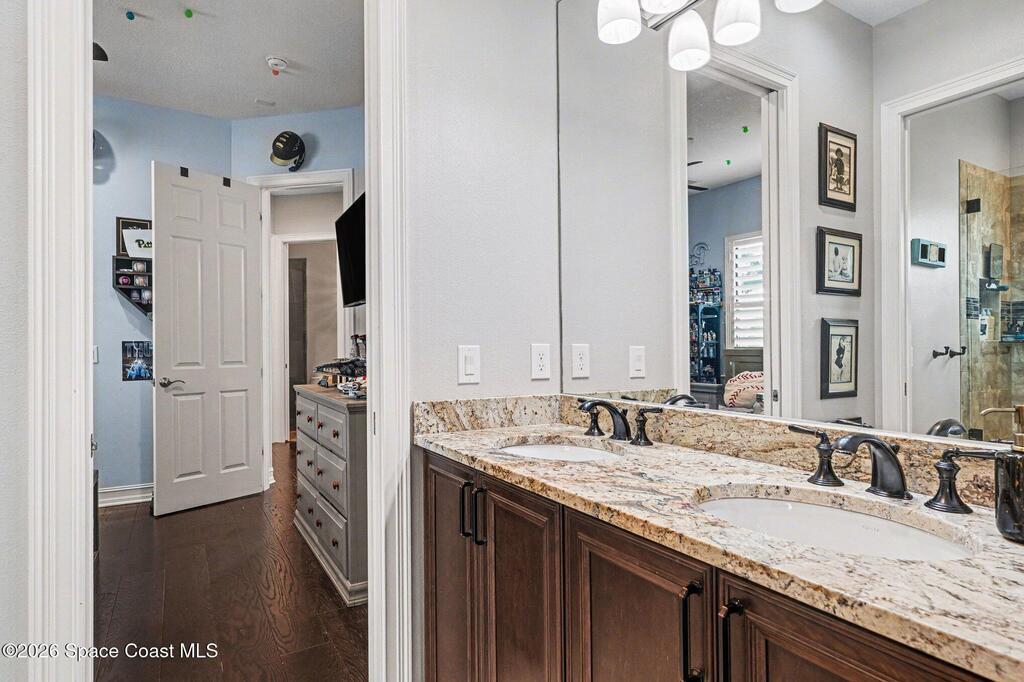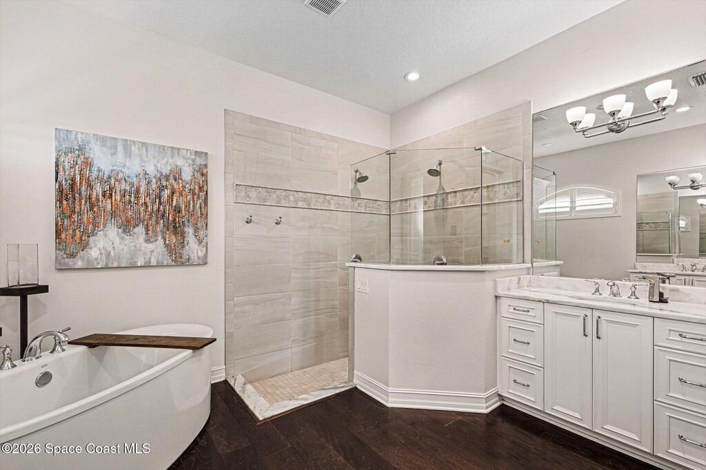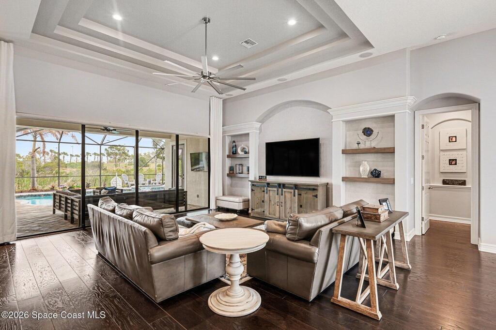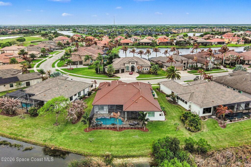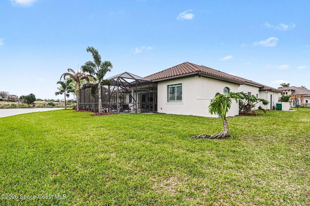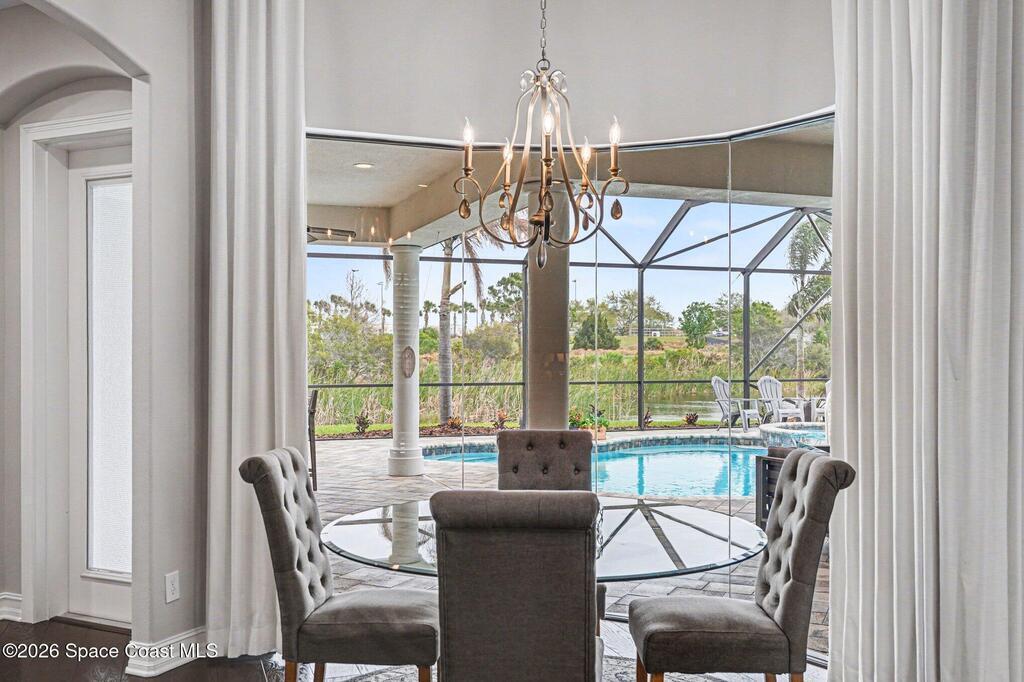 Welcome Home to this stunning custom-built luxury home. This home is a blend of contemporary elegance with timeless craftsmanship. As soon as you enter through the double doors, you'll appreciate the open floorplan that beams with bright light, making the space warm and cozy. The gourmet kitchen greets you with a large island, GE Monogram stainless-steel appliances, and a custom bar area. A spacious great room flows effortlessly to the covered lanai and private pool retreat, complete with outdoor kitchen. The seamless indoor-outdoor living space is perfect for both every day living and entertaining. The primary suite is a true sanctuary, boasting a spa-inspired bath with soaking tub, dual vanities, and his and hers closets. Additional features include a home office/5th bedroom, flex space off the 4th bedroom and a three-car garage. This home is also nestled along the first fairway of Duran--one of Brevard's premier golf courses. Fairway Lakes at Viera is a pristine neighborhood with