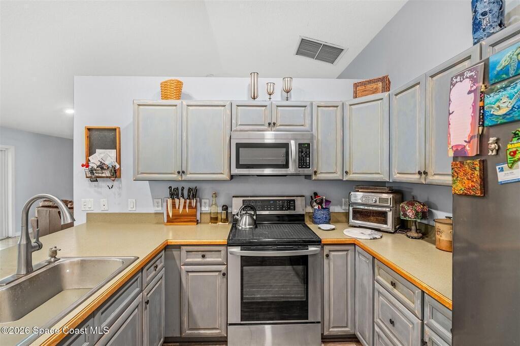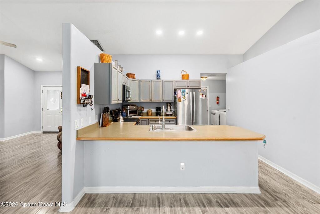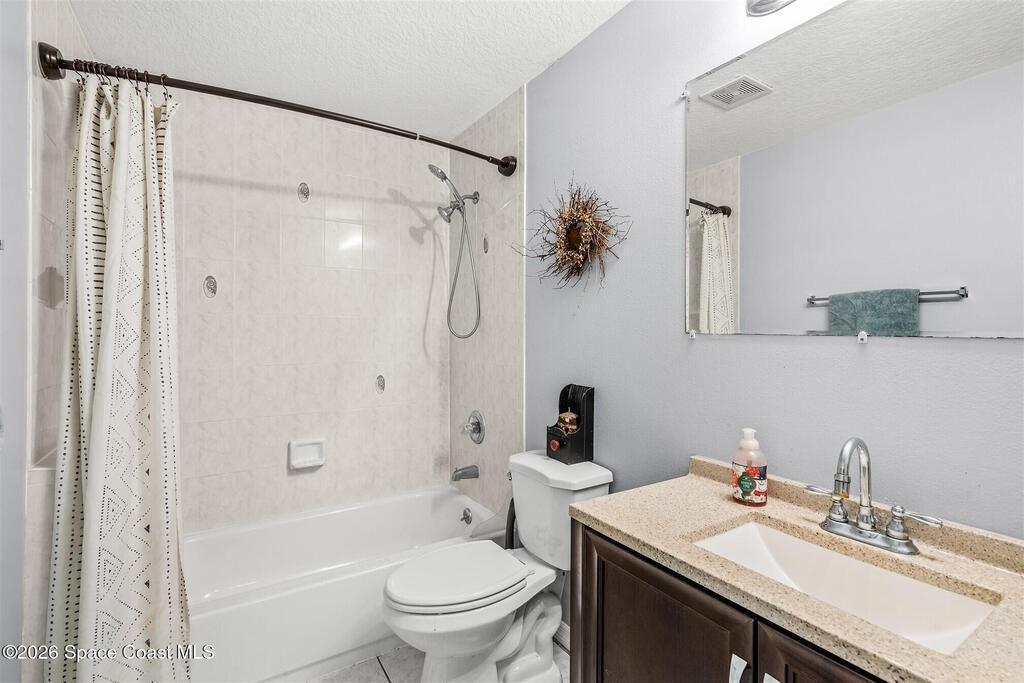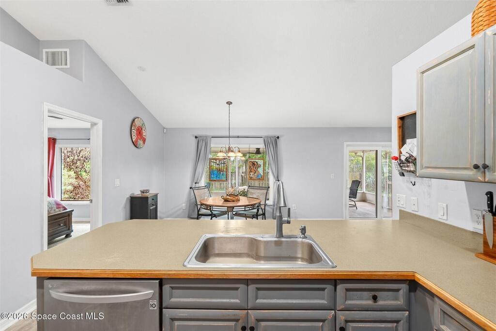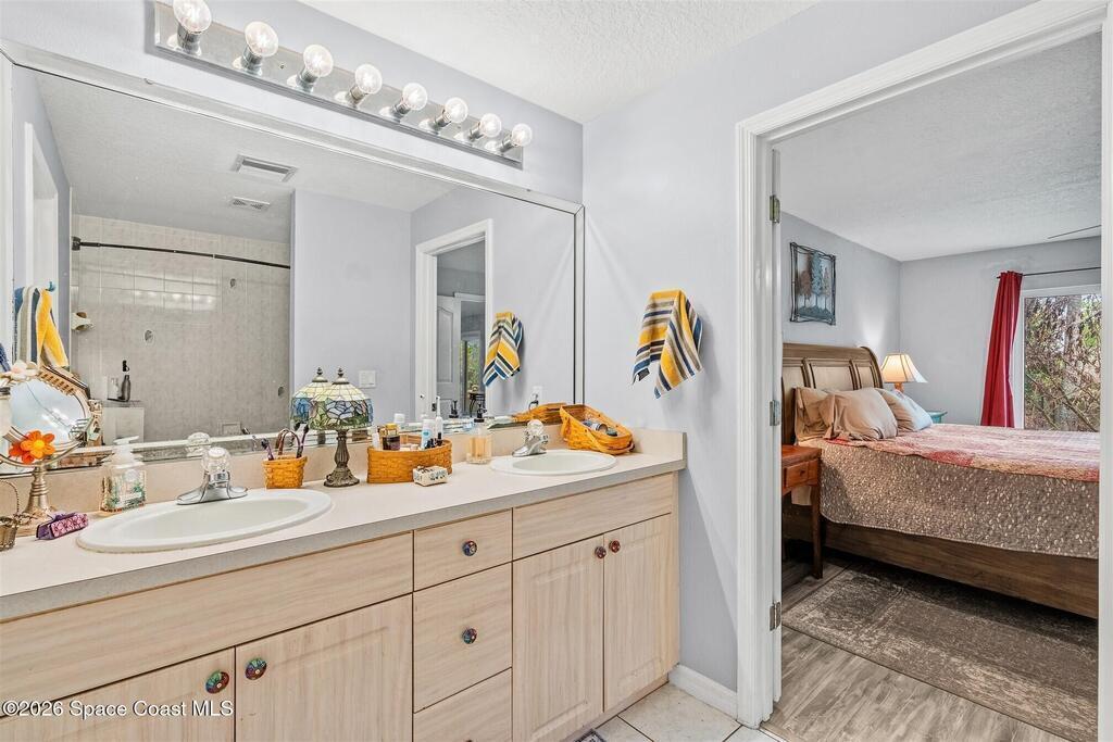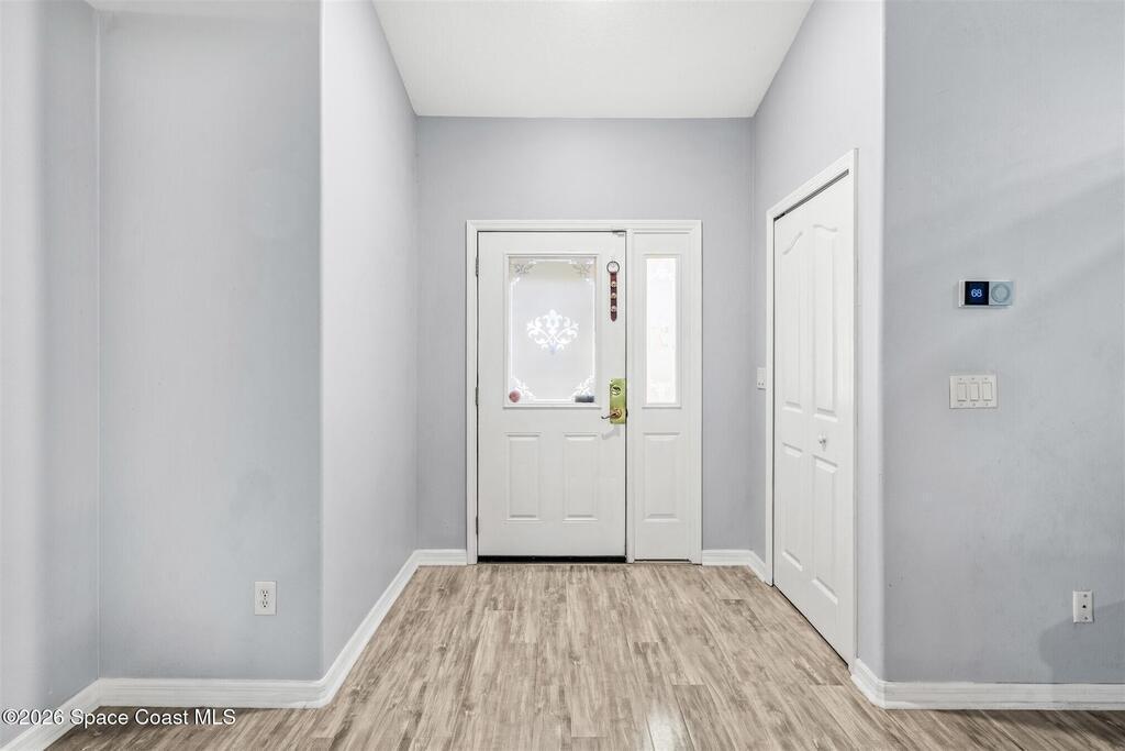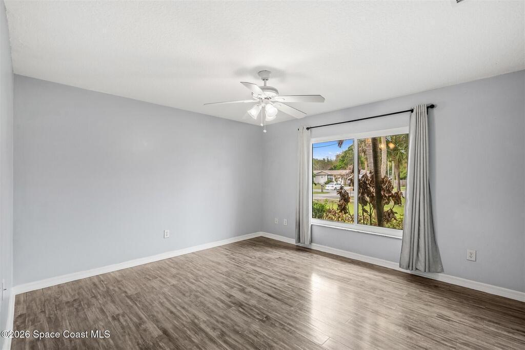Welcome to this beautifully maintained home in desirable Port St. John! Featuring a spacious open floor plan, this property offers both comfort and functionality, perfect for everyday living and entertaining. The interior boasts stylish Pergo flooring throughout the main living areas and bedrooms, with durable tile in the bathrooms for easy maintenance. Major updates provide peace of mind, including a 2018 roof, 2025 air conditioning system, a 2023 water heater, and impact windows throughout the entire home for added security and energy efficiency. Step outside to enjoy the large, covered patio overlooking a fully fenced backyard with plenty of space for pets or play. Irrigation is controlled by a well system to keep those water bills low. An extended driveway continues into the side yard, offering ample room to park boats, trailers, or recreational vehicles. This home combines modern updates, thoughtful features, and outdoor versatility in a convenient location.
