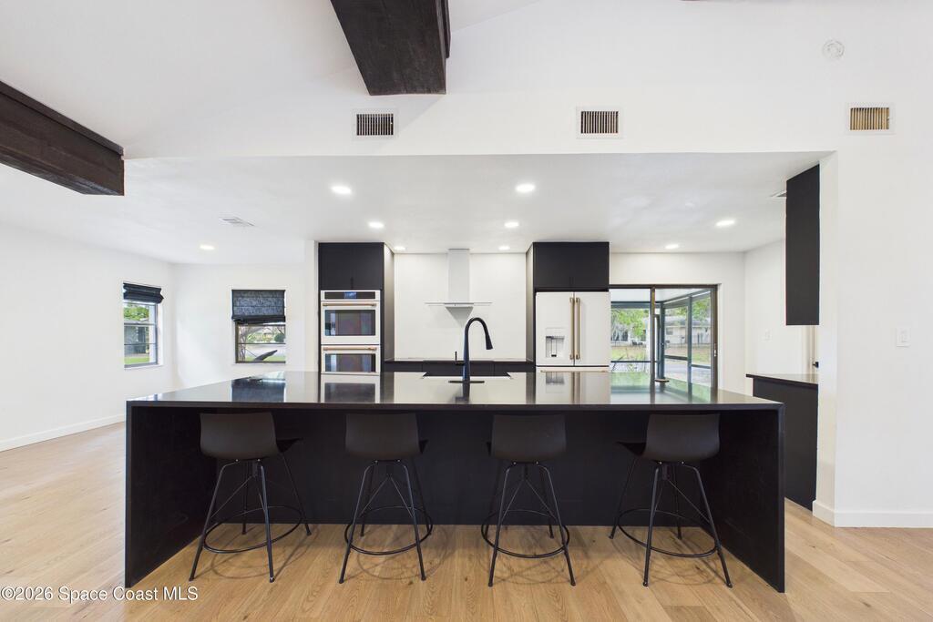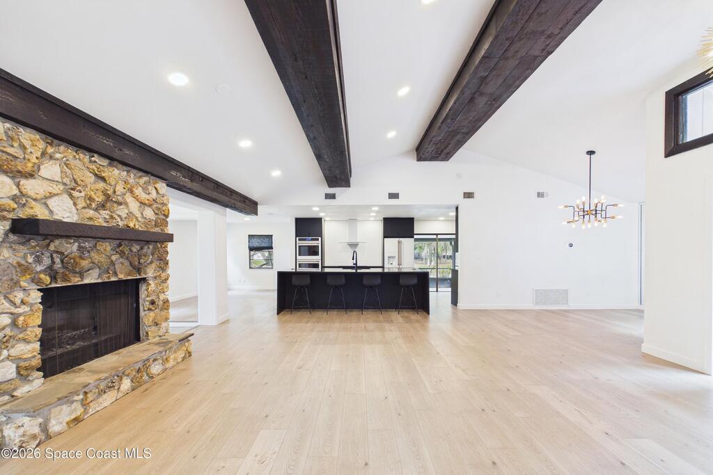 Welcome to this one-of-a-kind fully renovated waterfront home in the highly desirable Majestic Oaks community of St. Cloud. Situated on a rare half-acre corner lot with mature oak trees and low HOA, this property offers a premier boating lifestyle with community dock access to East Lake Toho, Fells Cove, and Lake Ajay. The 2,311 sq ft split floor plan features 3 bedrooms, 2 baths, multiple living and dining areas, and a chef's kitchen with waterfall quartz island, stainless appliances, custom hood, and double oven. Enjoy a gas fireplace, Florida sunroom, and private courtyard patio. The primary suite includes a freestanding tub and separate shower. Additional features include a screened patio, fire pit, oversized 2-car garage, extended driveway with RV parking, solar system, and Tesla EV charger. Newer roof, 2022 water heater, and 2017 HVAC offer peace of mind. Convenient to Lake Nona, Medical City, dining, and top schools.