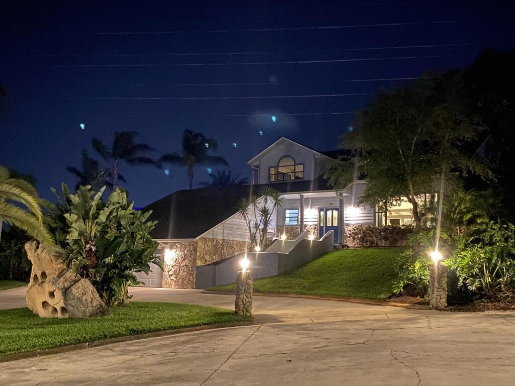 Welcome to the Tropical resort. Gorgeous 3 bedrooms/ 4 bathrooms SFH of scenic Indian River Drive. Step into luxury w/ a huge private backyard, swimming pool w/ in-ground spa, outdoor shower, screened gazebo, Tiki bar, koi pond, Key West style lush tropical landscaping. Modern decor & light fixtures, elevator, washer & dryer, garage, walk-in showers. Enjoy 2 living spaces w/ a great room & formal living room. 2 full bath downstairs w/ one outside access from pool. Master suite in the 2nd floor w/ 2 roomy closets, spacious walk-in shower, dry bar, private access to large deck & private balcony. From your master suite watch the rocket launch take-off & landing. Shared dock w/ a beautiful river view. Easy access to Port Canaveral, KSC, beach-lines, 528 & just 45 mins to Orlando/ attractions.