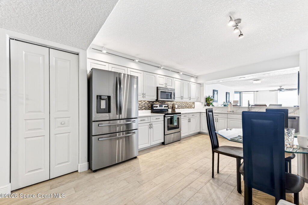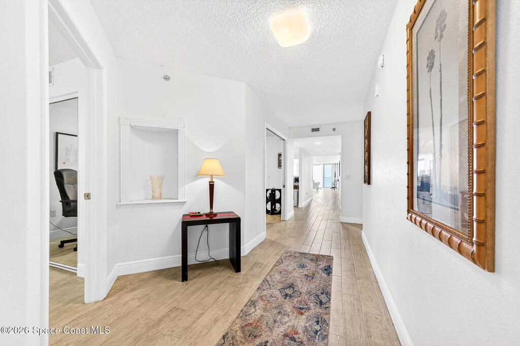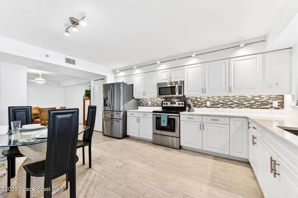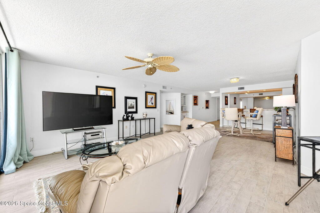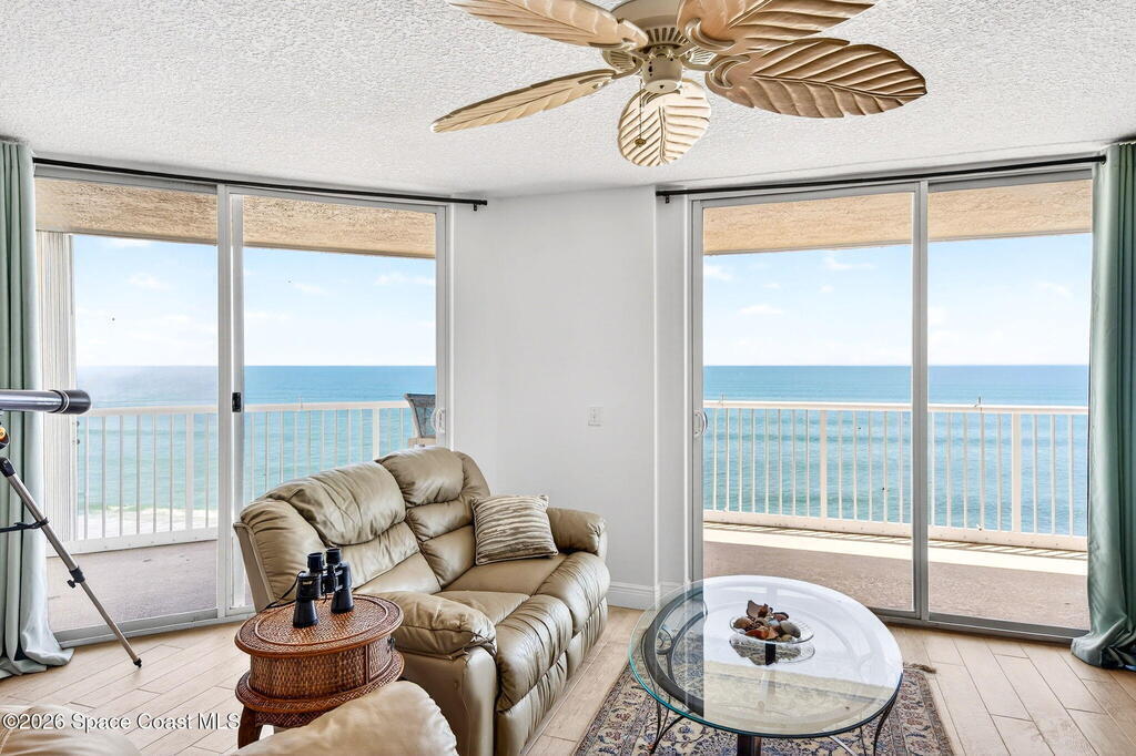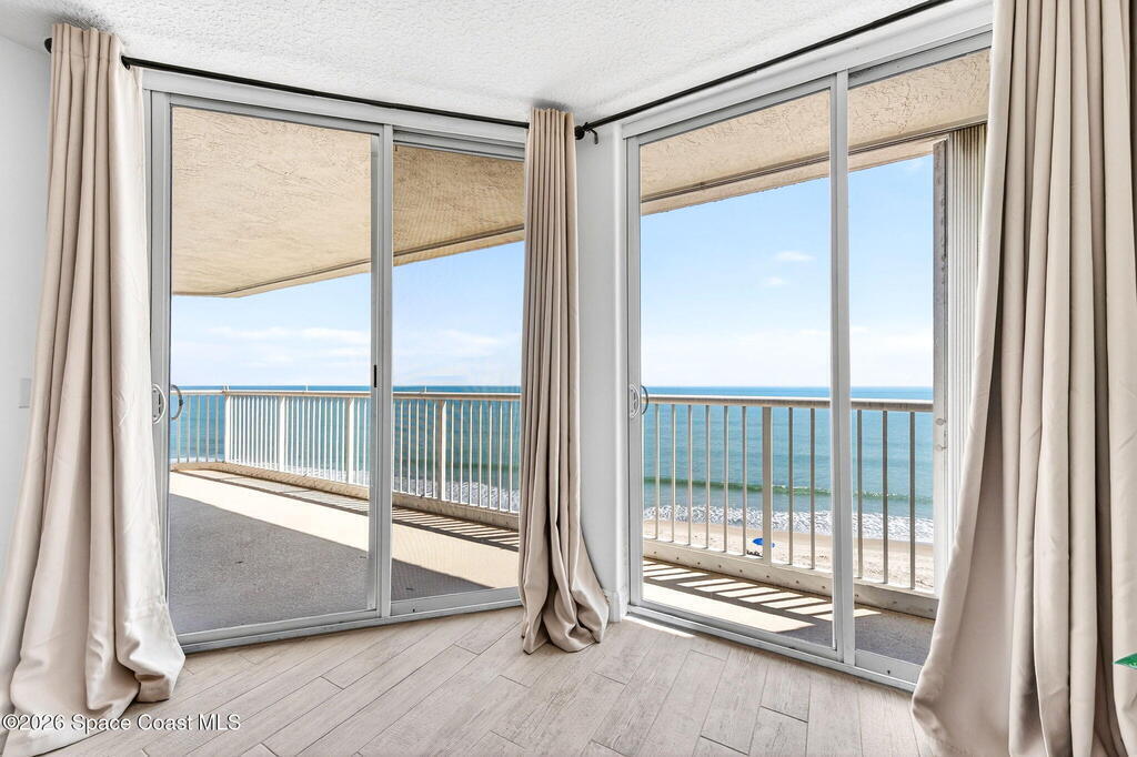 Elevated coastal living meets refined privacy in this exceptional 6th-floor residence at Gardenia. Tucked within one of Indian Harbour Beach's most exclusive oceanfront enclaves, this spacious condo offers a seamless blend of luxury, security, and breathtaking Atlantic views. Massive glass sliders invite natural light to pour into the main living space and primary suite, both opening to a generously sized balcony where sunrise views over the ocean become part of your daily routine. The thoughtfully designed layout features three well-appointed bedrooms along with a versatile bonus space--perfect for a home office, flex room, or additional dining area to suit your lifestyle. Gardenia continues to set the standard for well-maintained, upscale living with recent upgrades including a 2023 roof replacement, newly installed paver parking, completed structural inspections (SIRS), and the added peace of mind of no upcoming assessments. Residents enjoy a secure, private environment with garage