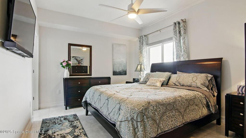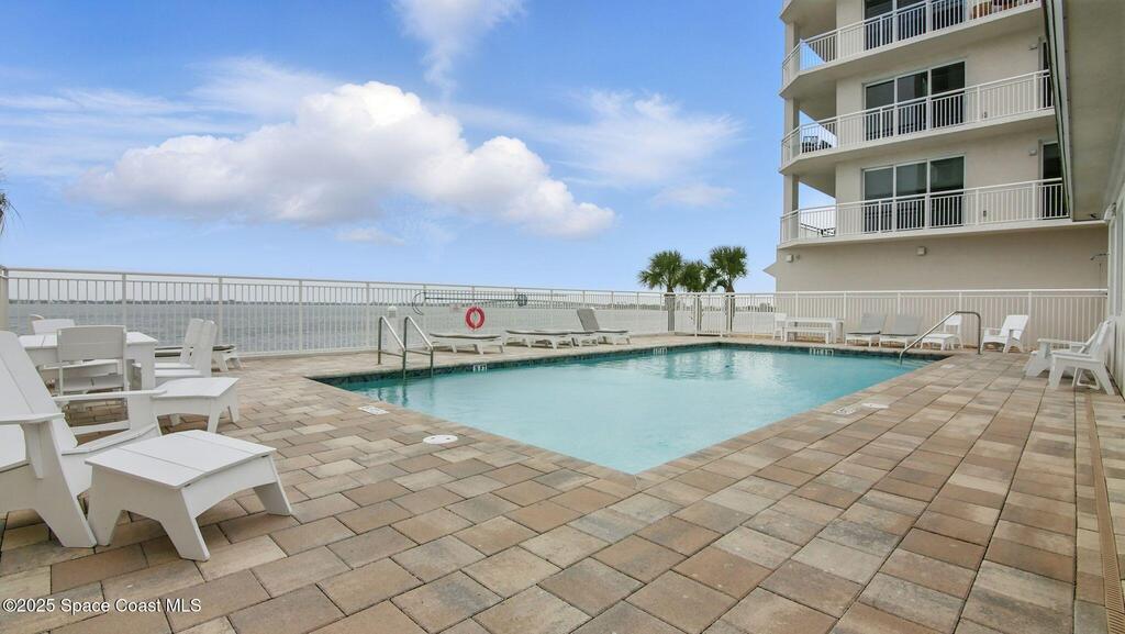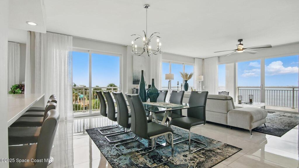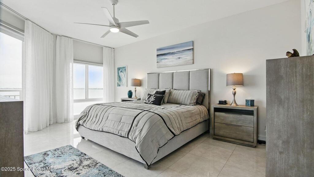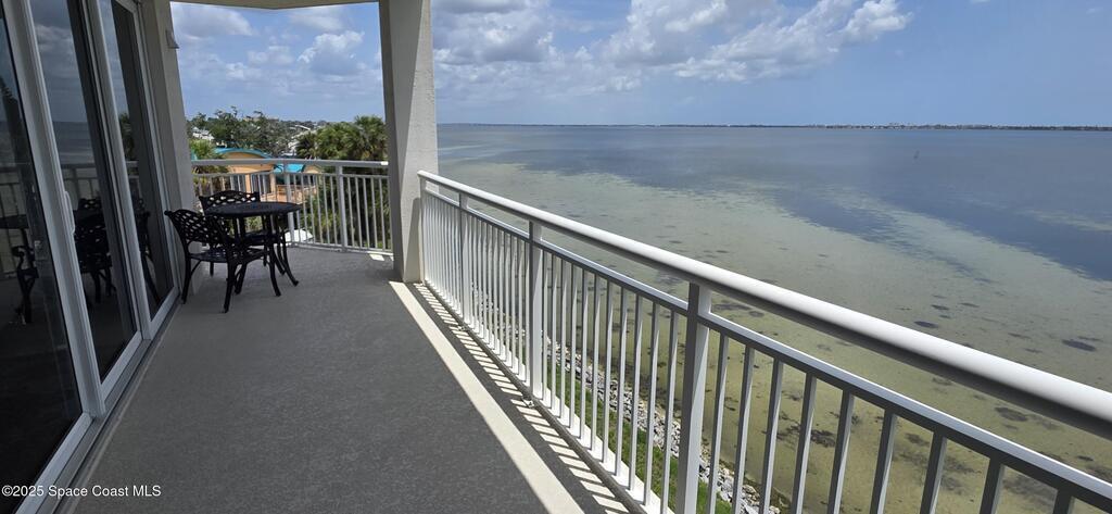 Beautiful spacious open concept condo on the Indian River. Enjoy all the river life from your balcony and watch the Dolphins playing. Beautiful sunrises and view of the rocket launches. Beautiful three bedroom, three bath, spacious open concept condominium right on the Indian River. Many upgrades throughout. New quartz countertops with waterfall and backsplash. Convection wall oven with microwave, induction 36 inch cooktop, and lots of pull-outs throughout the home. Drapes, shades, and most switches work with Alexa or Google home. Upgraded mirrors and lighting throughout. Pull out ironing board built into kitchen cabinets for easy access. Built-ins in all closets. Tankless electric hot water heater. Furnishings available at an additional cost. Heated pool with Clubhouse. Assigned parking under the building. Gated community only 4 years young.