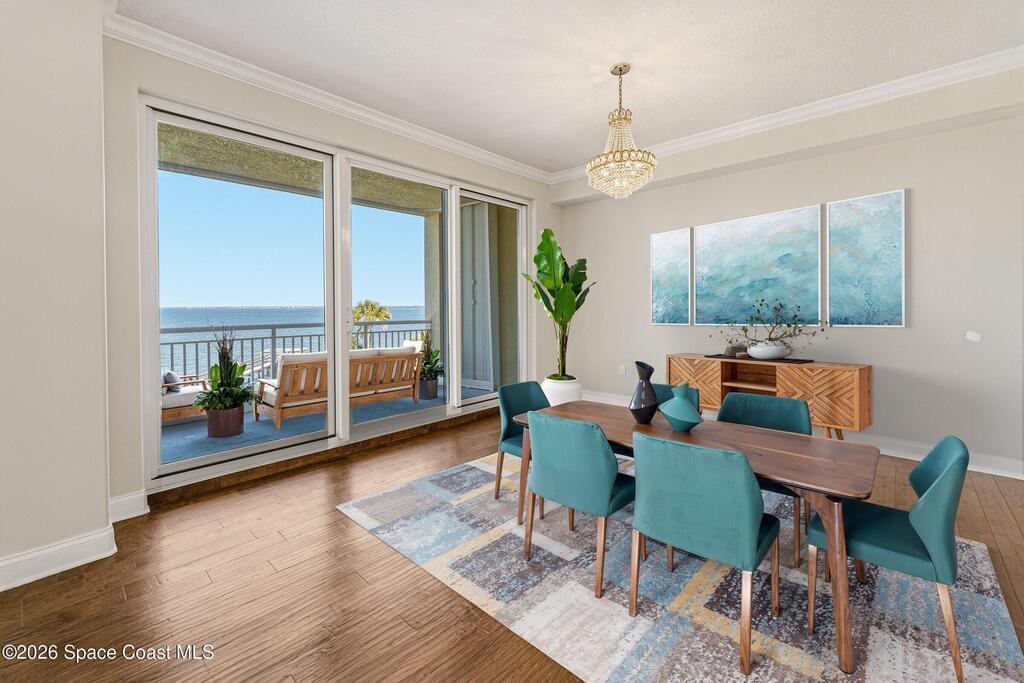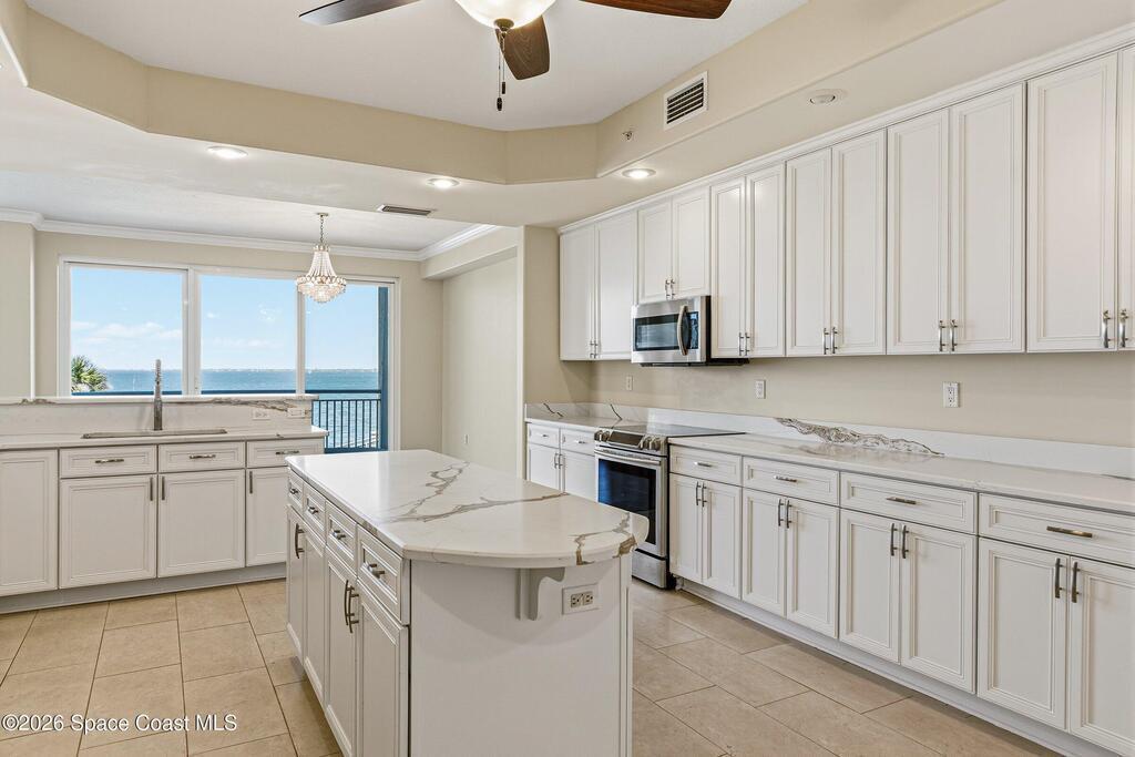 Venetian Bay! The premium Palm Bay riverfront address and the epitome of an easy Florida lifestyle! Walls of glass surround, creating a super light and bright home with the kitchen, formal dining room and great room overlooking the Indian River. Enjoy amazing sunrises with morning coffee on the wrap-around balcony. Long views of the river make your balcony the perfect place to watch rocket launches. This spacious condo boasts a retreat quality primary bedroom/bath suite. The 2nd and 3rd bedrooms also have ensuite baths for lots of privacy. The kitchen is perfect for the culinary enthusiast with an abundance of cabinetry and solid surface counter-top space surrounding a large island. A large laundry is off the kitchen. Community includes heated riverfront pool, clubhouse, dock/pier, kayak storage. Gated entrance w/secured lobby w/2 new elevators. Ground floor 1 car garage complete w/storage locker. Additional open parking available.