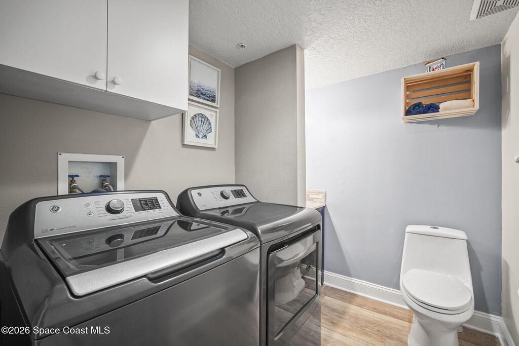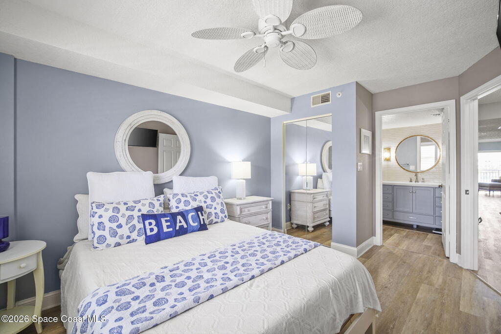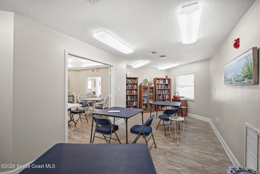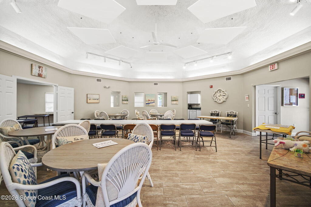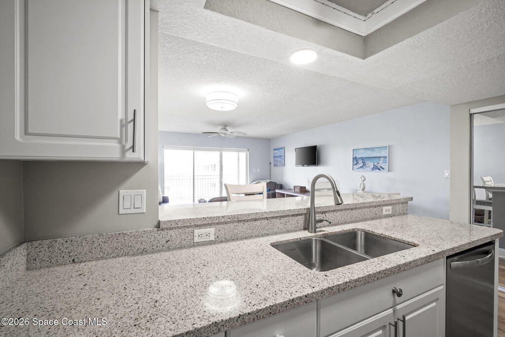 Tucked away in a gated Cape Canaveral community, this updated condo offers privacy with unbeatable convenience--just minutes from restaurants and Jetty Park. Inside, natural light fills the space, highlighting matching vinyl flooring throughout. The modern kitchen features quartz countertops, stainless steel appliances, and a breakfast bar overlooking the family room. The bedroom includes plantation shutters and an updated, spacious bath with a walk-in shower. Step onto the oversized balcony (with NEW hurricane shutter) to relax with ocean breezes and enjoy weekly cruise ship views. Amenities include a clubhouse, tennis and pickleball courts, plus a heated pool and spa. Complete with newer A/C and a private 1-car garage under the building. All concrete restoration has been completed!