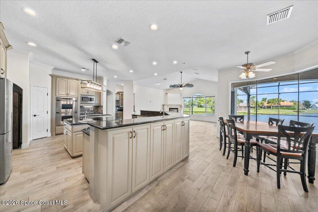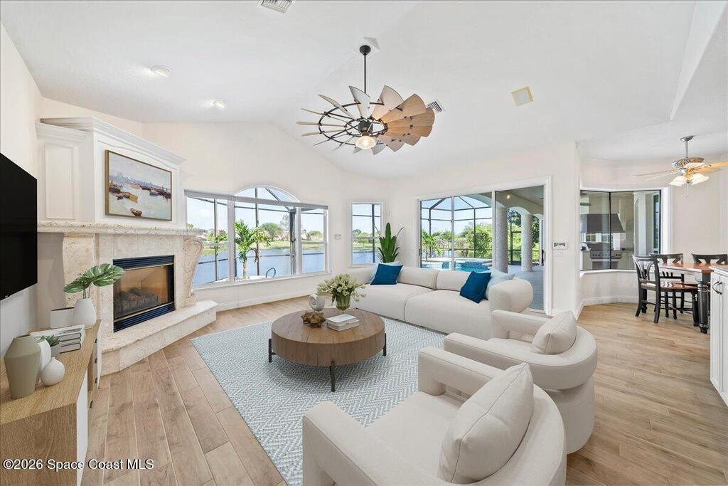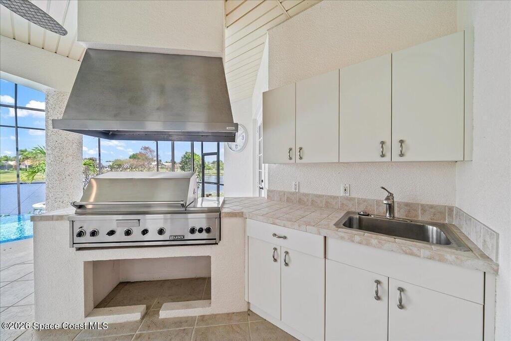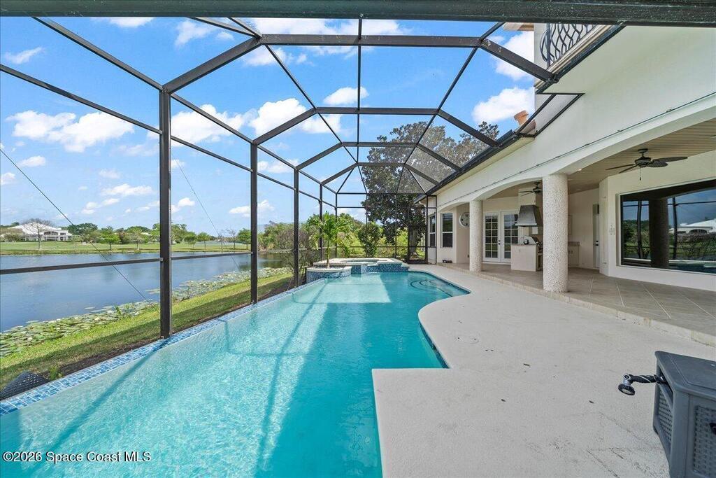 Experience refined living in this exceptional executive golf course home in the prestigious Legends community of Suntree. From the moment you enter, stunning lake and golf course views create a breathtaking first impression. Designed for both comfort and entertaining, the home features a gourmet kitchen with all-gas appliances, built-in refrigerator and freezer, butler's pantry, and wet bar, along with an outdoor kitchen for effortless indoor-outdoor living. Originally remodeled in 2019, the home has been thoughtfully enhanced over time with extensive upgrades, including all new ductwork. The most recent improvements include the newly renovated infinity pool and spa, two new AC systems with six-zone climate control, UV light disinfection system, hydrostatic filtration and a beautifully updated primary bathroom. Additional features include generator prewiring, a dedicated gardening room, and mature mango and banana trees. Live the life you deserve in the home of your dreams!