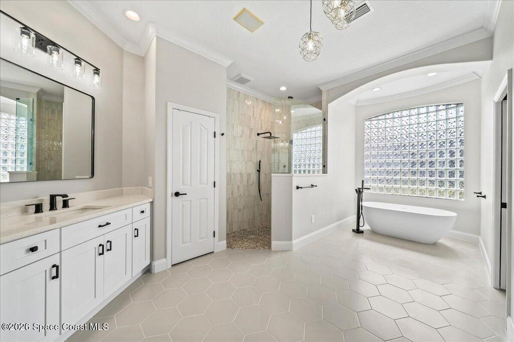 - Interior Features: Breakfast Bar, Built-in Features, Butler Pantry, Ceiling Fan(s), Central Vacuum, Eat-in Kitchen, Entrance Foyer, Guest Suite, His and Hers Closets, Jack and Jill Bath, Kitchen Island, Open Floorplan, Pantry, Primary Bathroom -Tub with Separate Shower, Primary Downstairs, Smart Thermostat, Split Bedrooms, Vaulted Ceiling(s), Walk-In Closet(s), Wet Bar and Wine Cellar