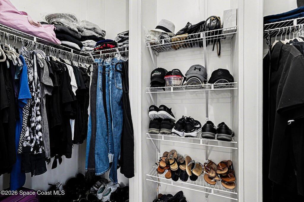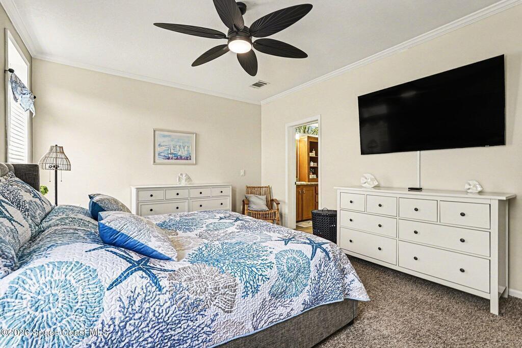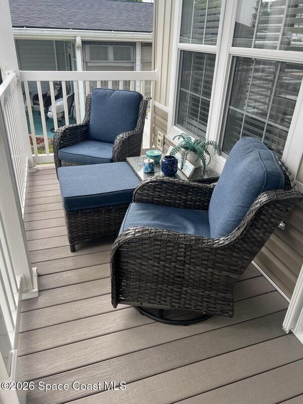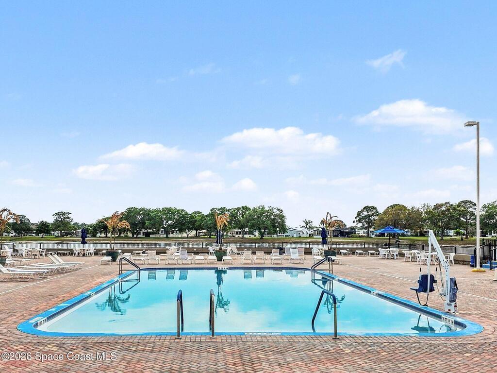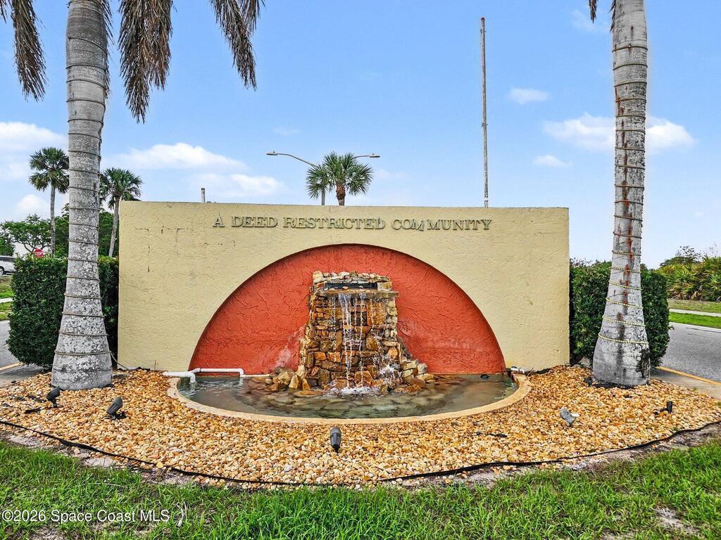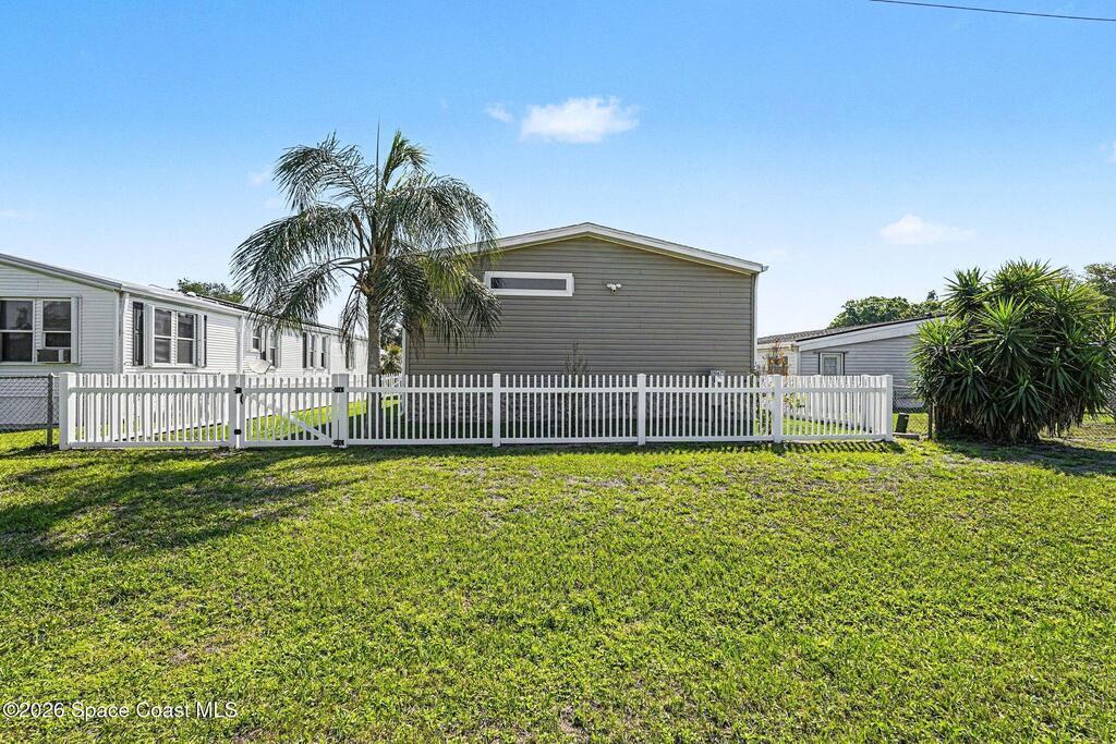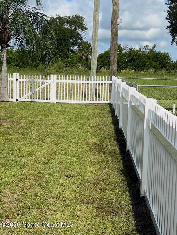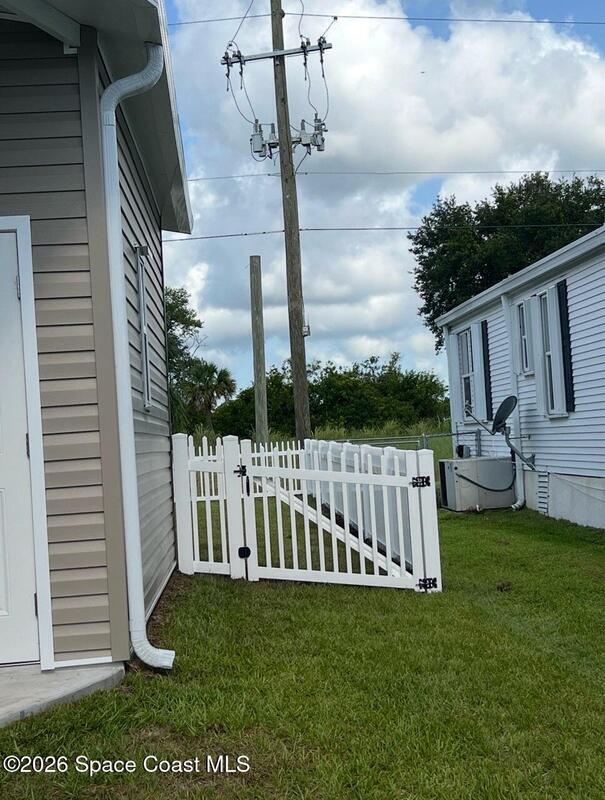 Experience modern Florida living in this well-maintained 2024-built home in desirable Barefoot Bay, offering the benefits of new construction without the wait.The home features 9-foot ceilings, luxury vinyl plank flooring, and a bright open-concept layout. The kitchen includes Stratford Oak cabinetry, premium countertops, and quality appliances, flowing seamlessly into the main living area, ideal for everyday living and entertaining. A split floor plan adds privacy, with carpeted bedrooms and a primary suite featuring a walk-in shower. Upgrades include crown molding, updated lighting, ceiling fans, and a full security system. Built for durability, the home is rated for 160 MPH winds and includes a 10-year structural warranty. Exterior features include vinyl fencing, three gated access points, and a SunSetter shade. Backing to a protected preserve, the property offers added privacy. Located in Barefoot Bay--no lot rent--with access to pools, golf, pickleball, private beach, and pier.