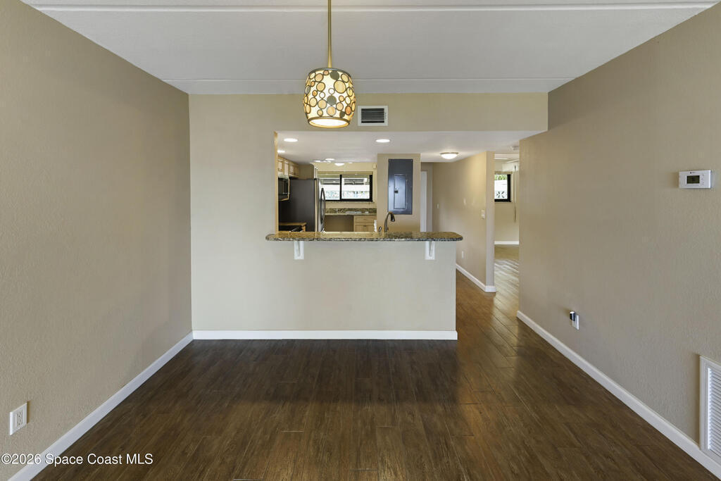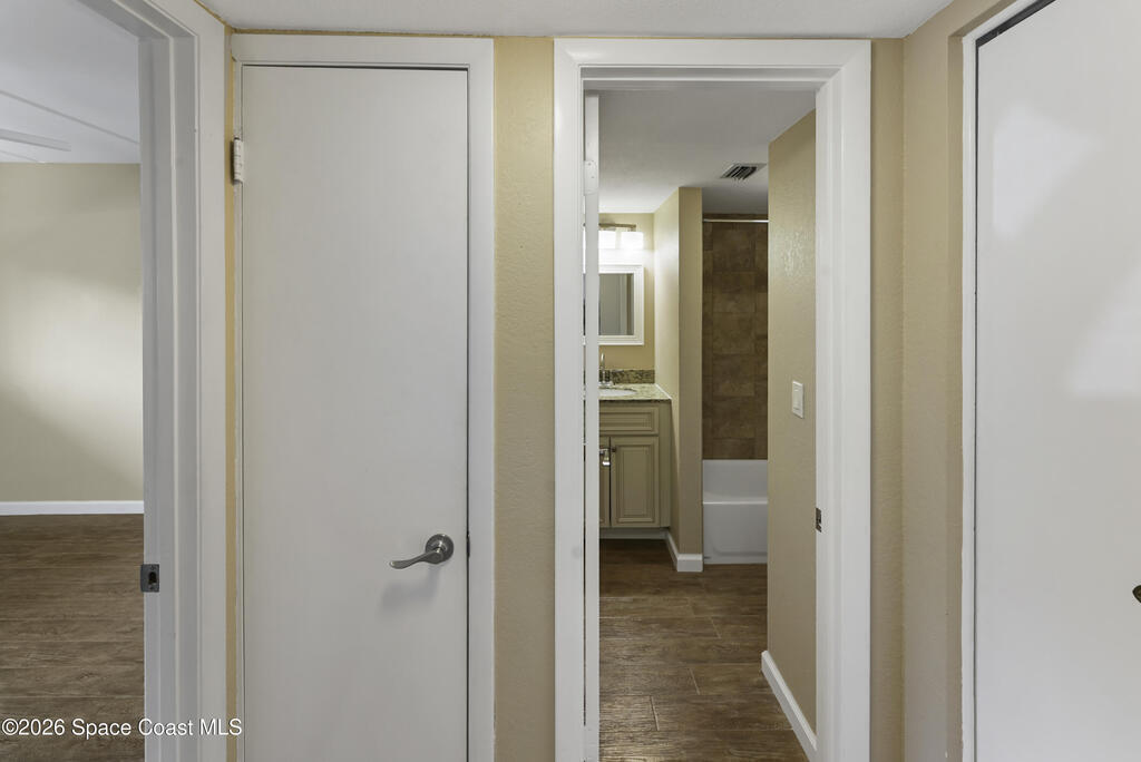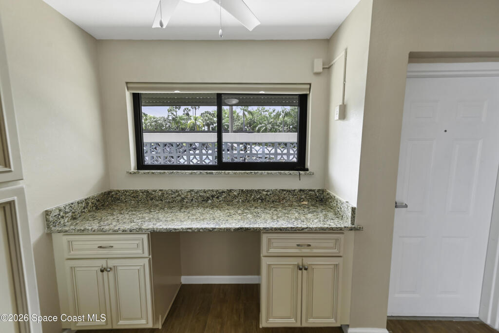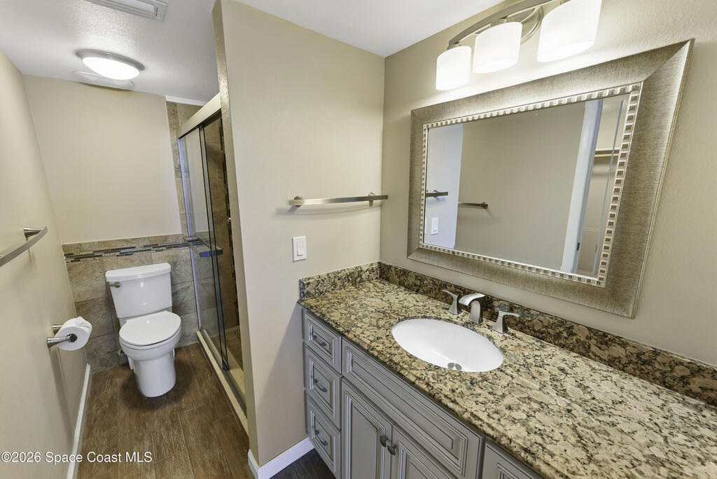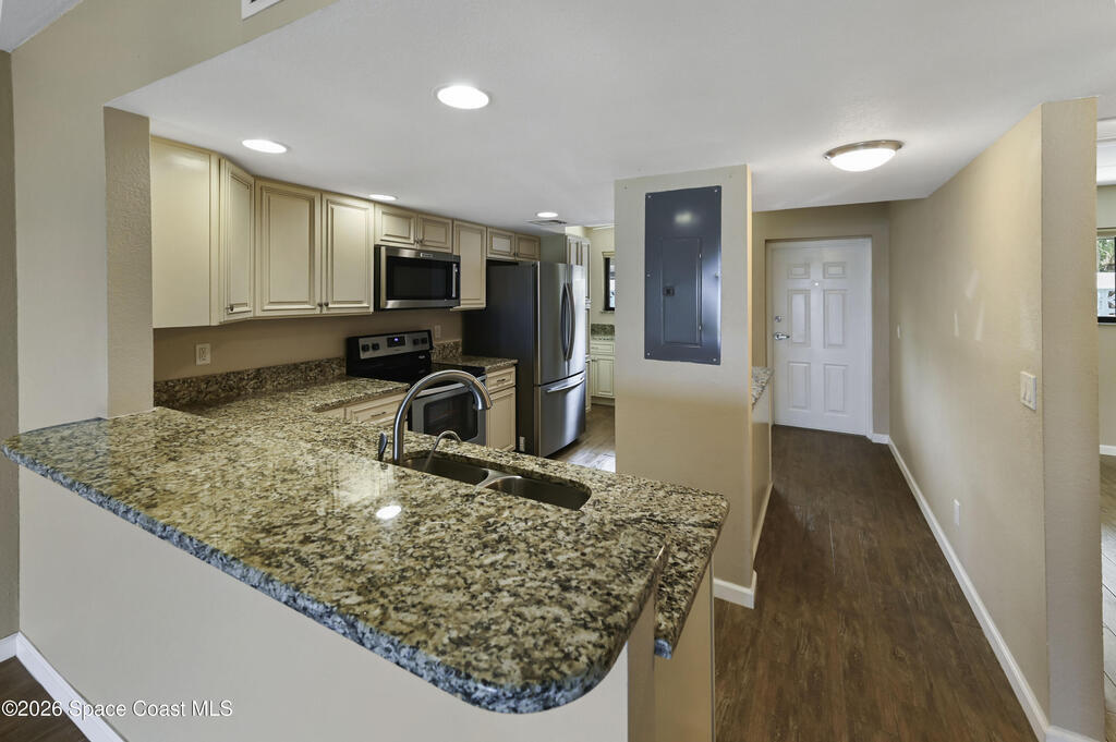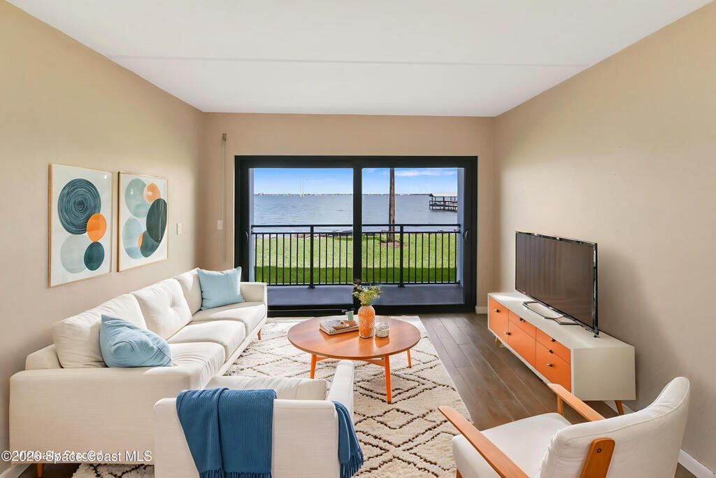Welcome to this beautifully updated first-floor riverfront condo with stunning water views the moment you walk in. Light and open layout with direct river sightlines creates a peaceful and inviting setting. The kitchen features granite countertops, center island, r, soft-close drawers and recessed lighting, ideal for everyday living & entertaining. Wood-look tile flooring runs throughout for a clean, modern feel. Split floor plan offers 2 spacious bedrooms for added privacy. The primary suite includes a walk-in closet with built-in storage shelves and a large window overlooking the river, with a beautifully remodeled bathroom. Enjoy your private rear porch--perfect for morning coffee or evening relaxation--and hurricane shutters for added peace of mind. Additional features include indoor laundry with washer and dryer, private storage in the lobby, secured lobby access, and one assigned carport space. Community amenities include a pool and pier for true waterfront living. VIEW TODAY